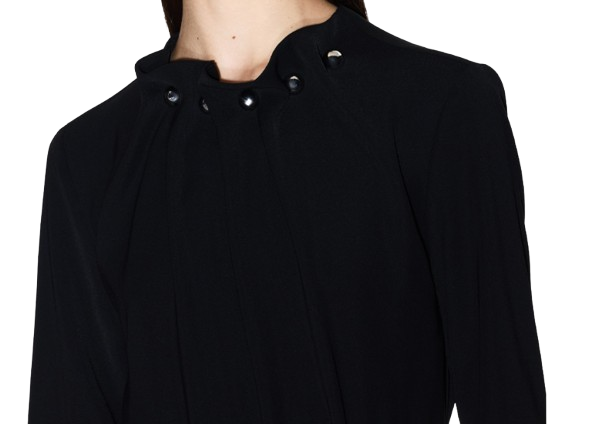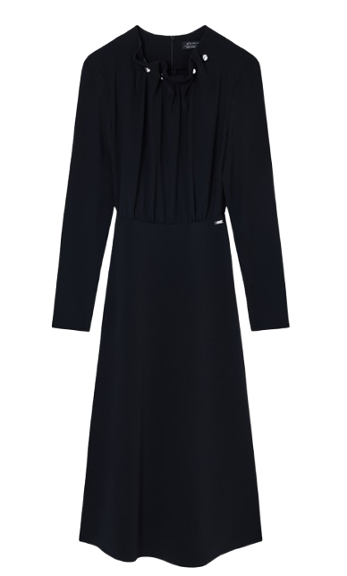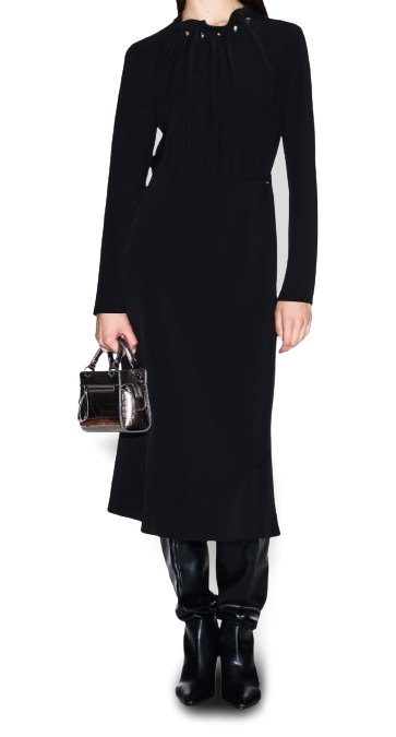 Abitino donna Armani Exchange. Modello: abitino di lunghezza midi a campana, con chiusura posteriore con zip nascosta, girocollo con pieghe e bottoni decorativi. Composizione: 100% poliestere. Colore: nero.
