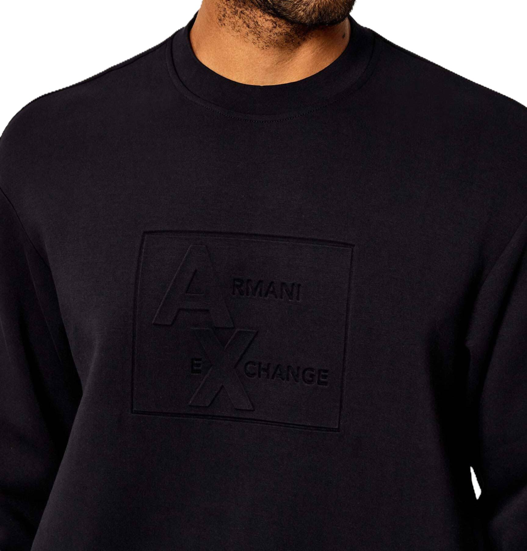 Felpa uomo Armani Exchange Modello: girocollo Materiale: 79% cotone, 17% poliestere, 4% elastan Colore: blu