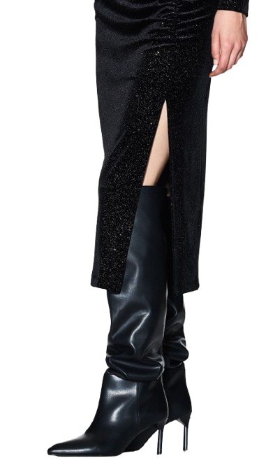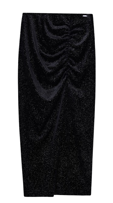 Gonna donna Armani Exchange. Modello: midi, con spacco laterale. Composizione: 90% poliestere, 10% elastane. Colore: nero.