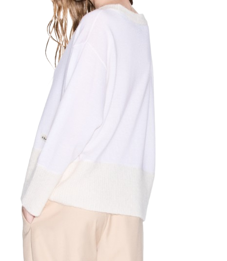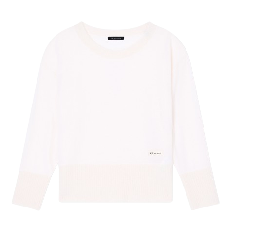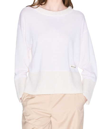 Maglia donna Armani Exchange. Modello: maglia girocollo a manica lunga, polsini e orlo a coste. Composizione: 100% lana vergine. Colore: ecru.