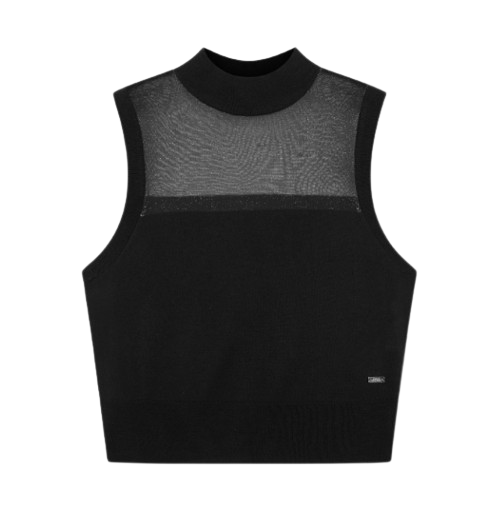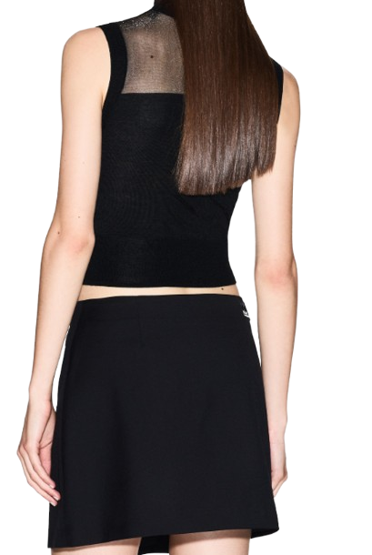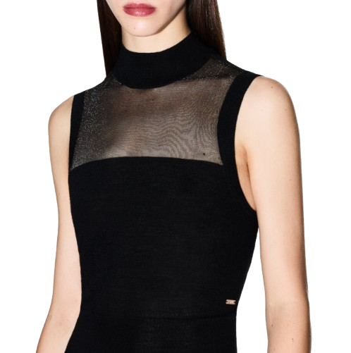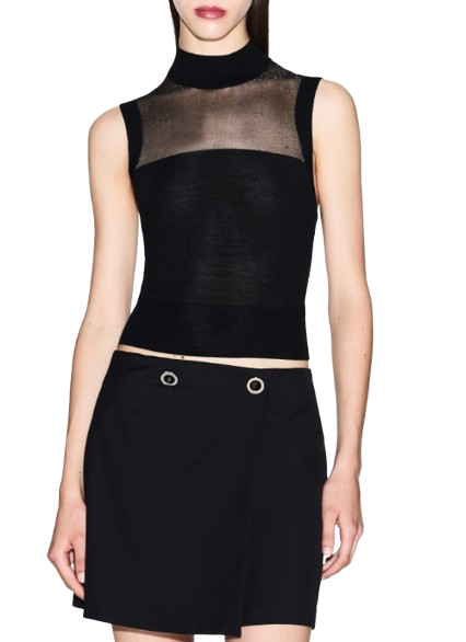 Maglia top donna Armani Exchange. Modello: top a collo alto in maglia a rete. Composizione: tessuto principale 50% acrilico, 50% lana vergine; secondo tessuto 74% poliestere, 26% fibra metallizzata; dettagli a costine 48% acrilico, 48% lana vergine, 3% poliammide, 1% elastan. Colore: nero.