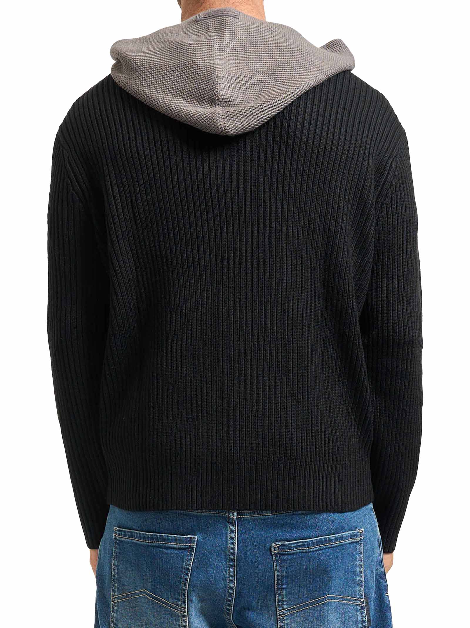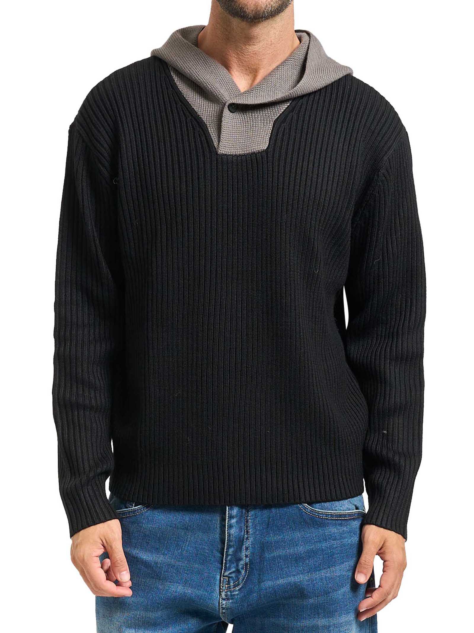 Maglione uomo Armani ExchangeModello: con cappuccioMateriale: 34% Acrilico 32% Cotone 34% Lana VergineColore: nero
