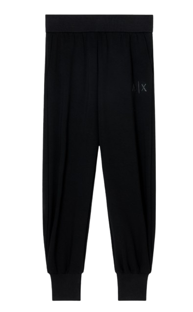Pantaloni donna Armani Exchange. Modello: pantaloni sportivi con elastico. Composizione: 56% poliammide, 36% viscosa, 8% elastan. Colore: nero.