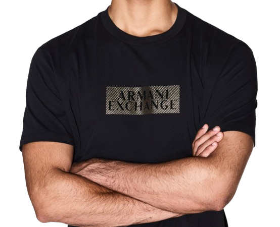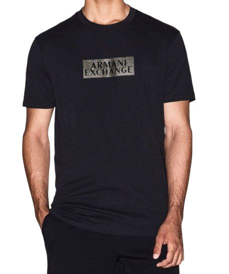 T-shirt uomo Armani Exchange. Modello: t-shirt a maniche corte a girocollo con logo box stampato sul petto. Composizione: 100% cotone. Colore: nero.