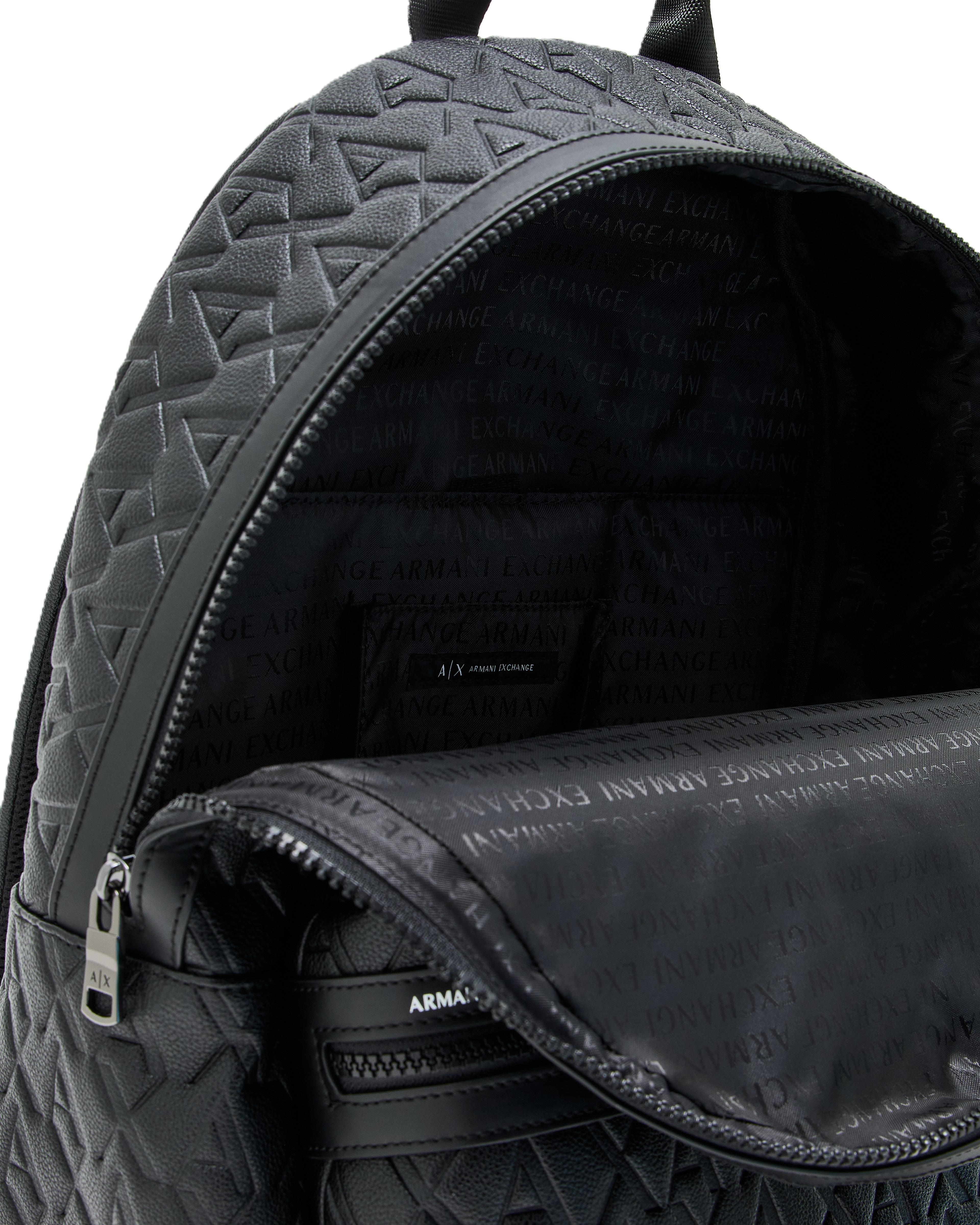 Zaino uomo Armani Exchange Modello: con monogrammi Dimensioni: 30 x 15 x 41 cm Materiale: poliestere Colore:nero