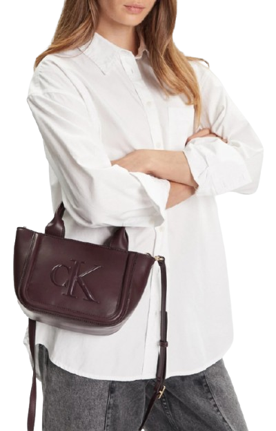Borsa donna Calvin Klein. Modello: borsa piccola Raised Ck Small Tote Bag With Strap, logo CK in rilievo sulla parte frontale, doppi manici e tracolla regolabile e rimovibile. Dimensioni: larghezza 20cm, altezza 17cm, profondità 8cm. Composizione: 100% poliuterano. Colore: fudge.