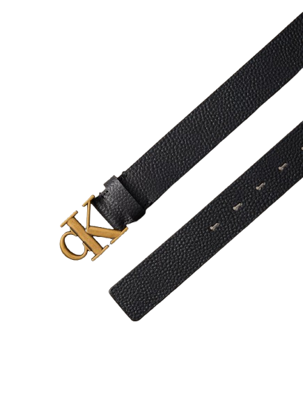 Cintura uomo Calvin Klein. Modello: cintura con fibbia con monogramma CK brunito e texture martellata. Composizione: 100% pelle. Colore: nero.