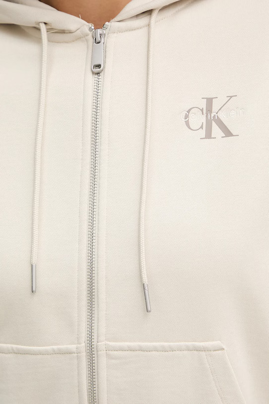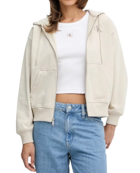 Felpa donna Calvin Klein Modello: zip e cappuccio, con tasche frontali Materiale: 86% cotone 14% poliestere Colore: beige