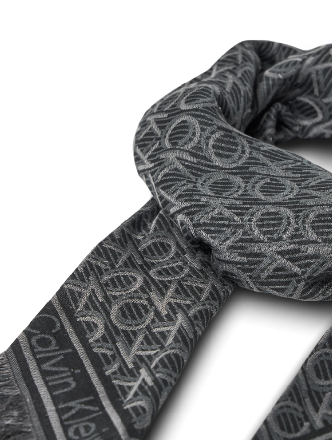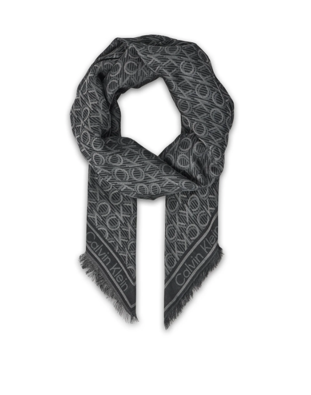 Foulard donna Calvin Klein. Modello: foulard monogram jacquard. Dimensioni: 130 x 130 cm. Composizione: 100% modal. Colroe: nero