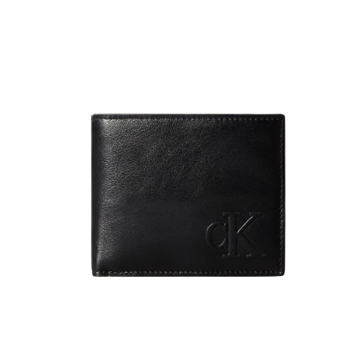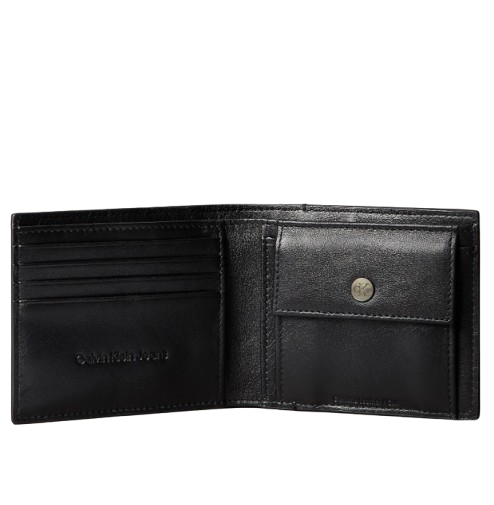 Portafoglio uomo Calvin Klein. Modello: portafoglio RFID con portamonete, logo monogramma Calvin Klein stampato sul davanti. Dimensioni: lunghezza 21cm, altezza 9cm, ampiezza 2cm. Composizione: 100% pelle. Colore: nero.
