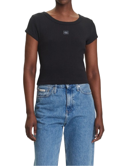 T-shirt donna Calvin Klein Modello: girocollo, slim fit Materiale: 95% cotone, 5% elastane Colore: nero