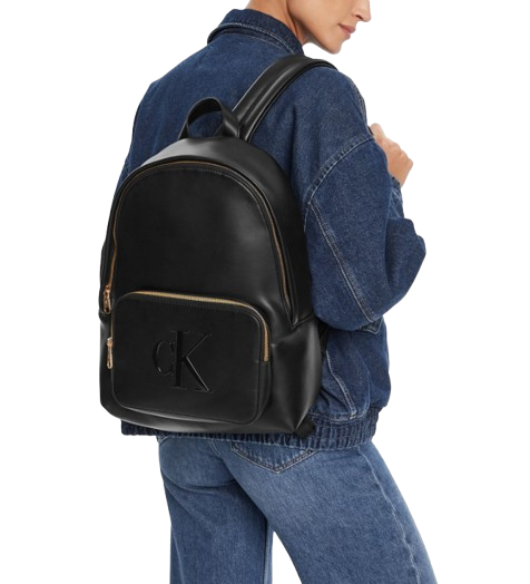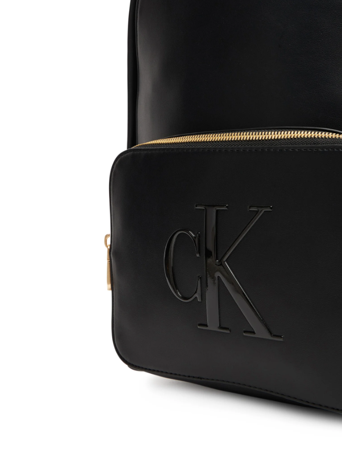 Zaino donna Calvin Klein. Modello: zaino Bold Ck Backpack, con chiusura cerniera, tasca frontale con logo in rilievo. Dimensioni: si adatta al formato A4. Composizione: similpelle. Colore: nero.