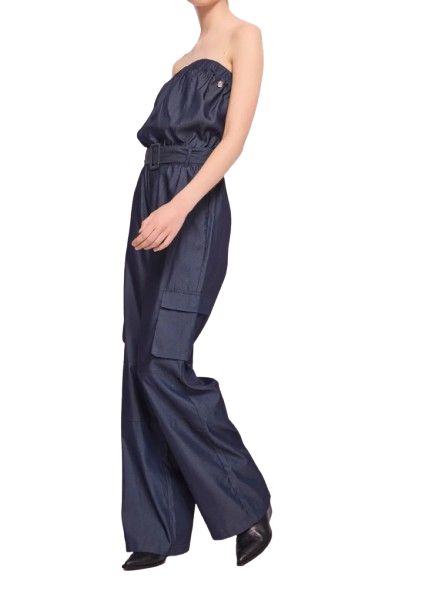 Tuta donna Denny Rose Modello: scollatura off the shoulder, cintura regolabile, tasche cargo Materiale: 70%Viscose 30%Polyester Colore: blue