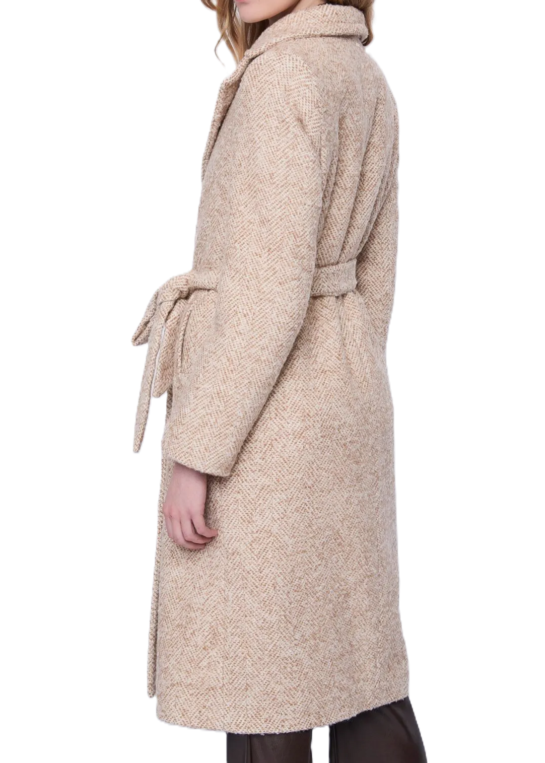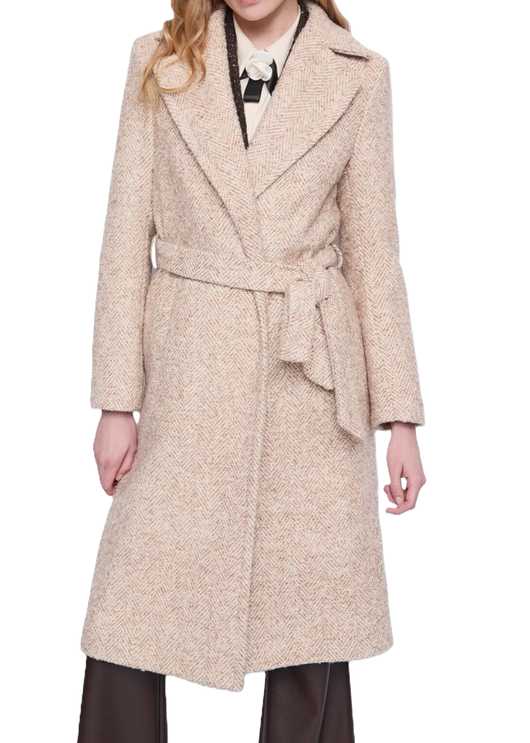 Cappotto donna Gaudì Modello: cappotto in panno di misto lana e cotone con collo a revers e cintura coordinata Materiale: 7% Poliestere, 13% Cotone, 10% Lana, 5% Acrilica, 3% Viscosa (Lurex), 2% Poliammide Colore: beige