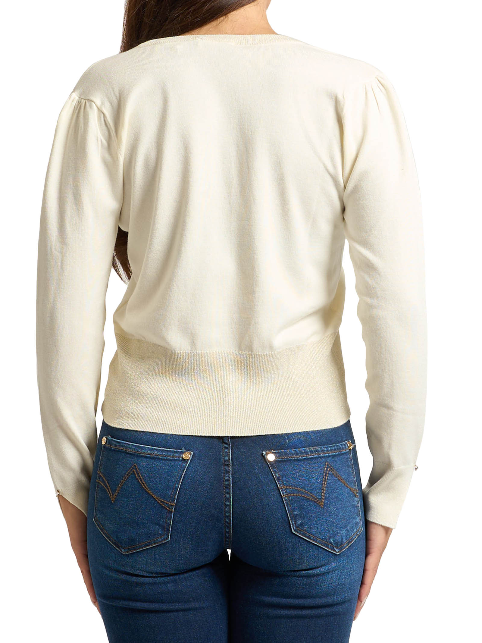 Maglia donna GaudìModello: scollo a vMateriale: 70% Viscosa 28% Poliammide 2% PoliestereColore: bianco