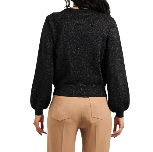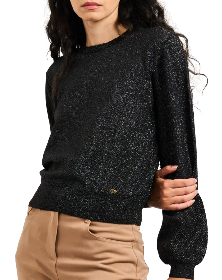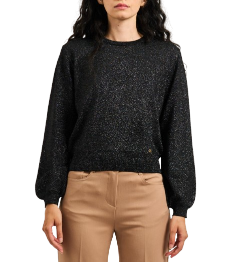 Maglia donna GaudìModello: girocolloMateriale: 42% poliestere, 40% viscosa, 18% poliammideColore: nero