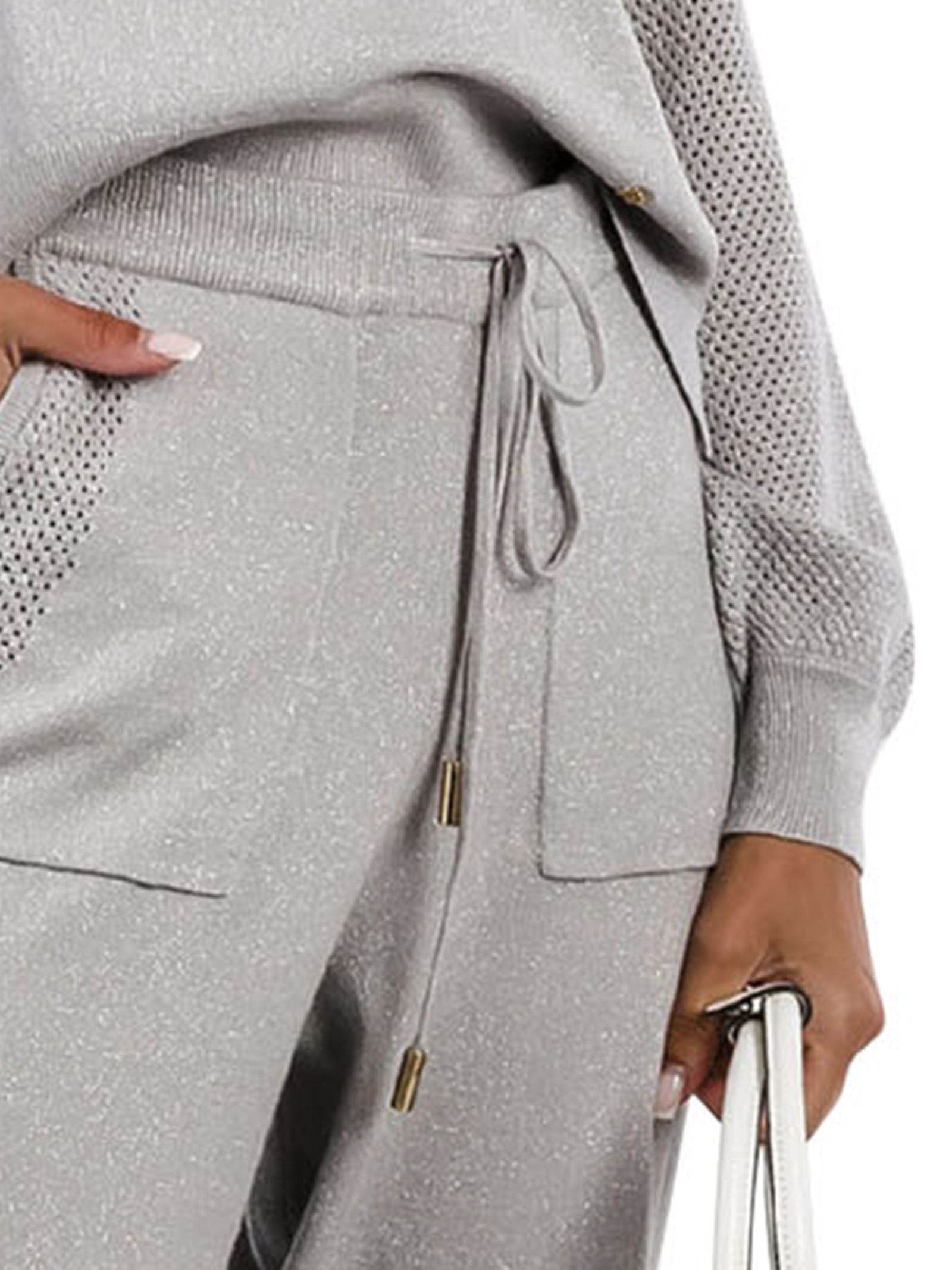 Pantaloni donna GaudìModello: con coulisseMateriale: lurexColore: grigio