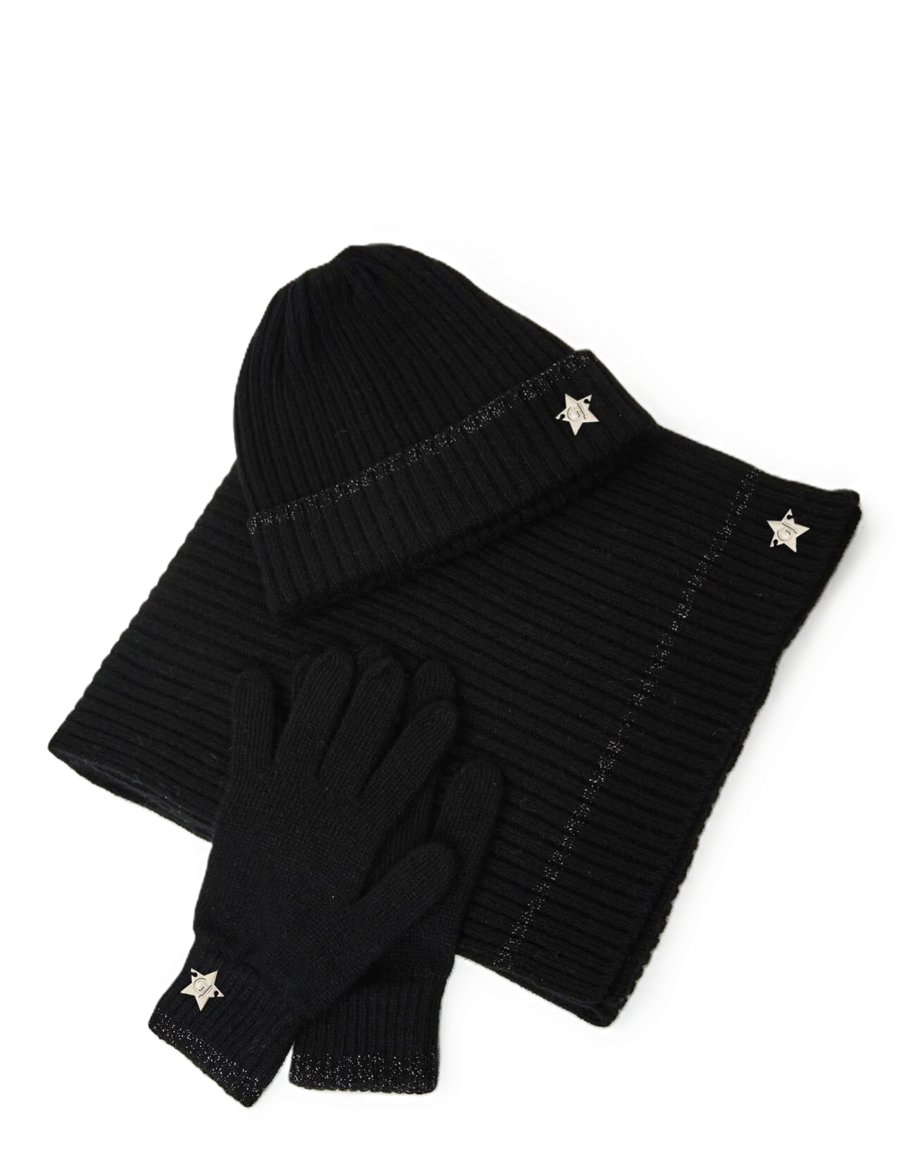 Set coordinato donna Gaudì Modello: berretto, guanti e sciarpa Colore: nero