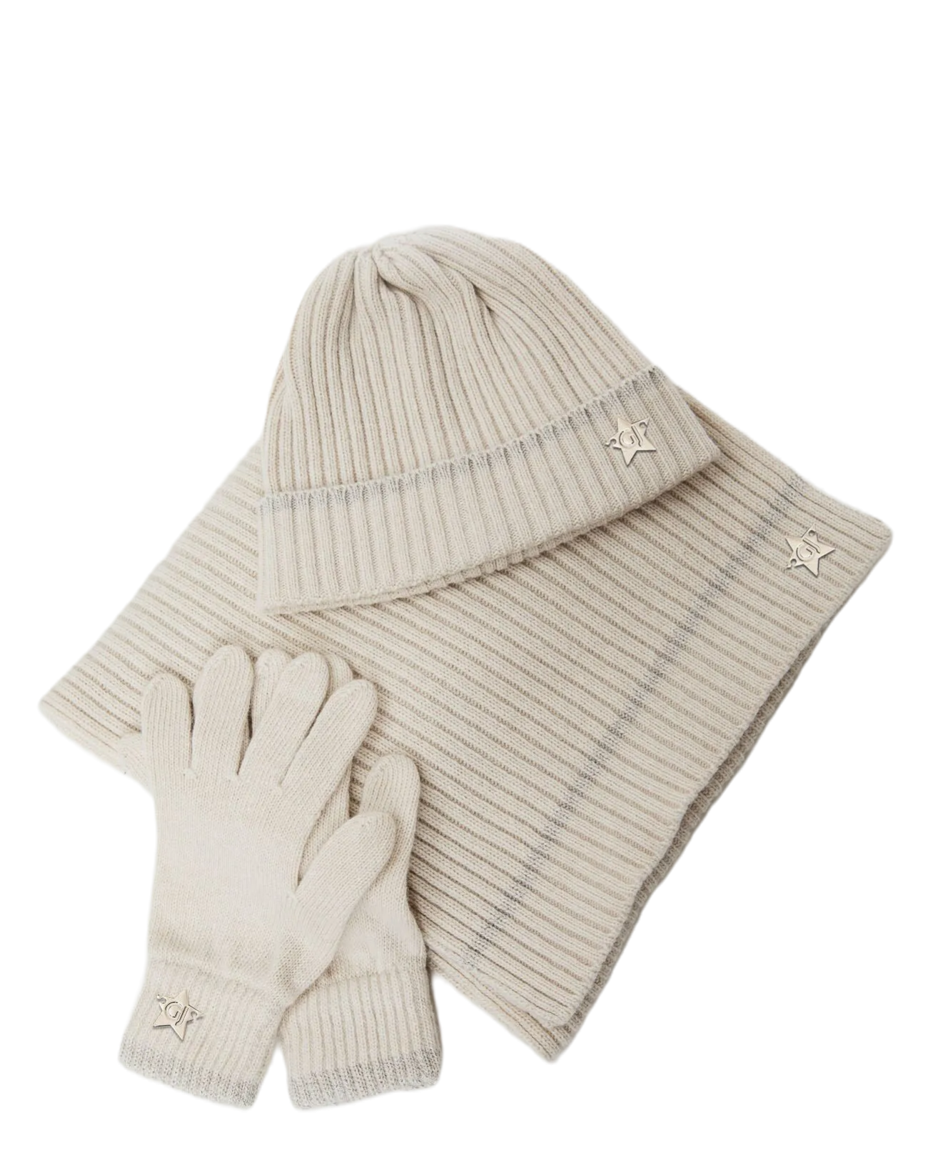 Set coordinato donna Gaudì Modello: berretto, guanti e sciarpa Colore: bianco