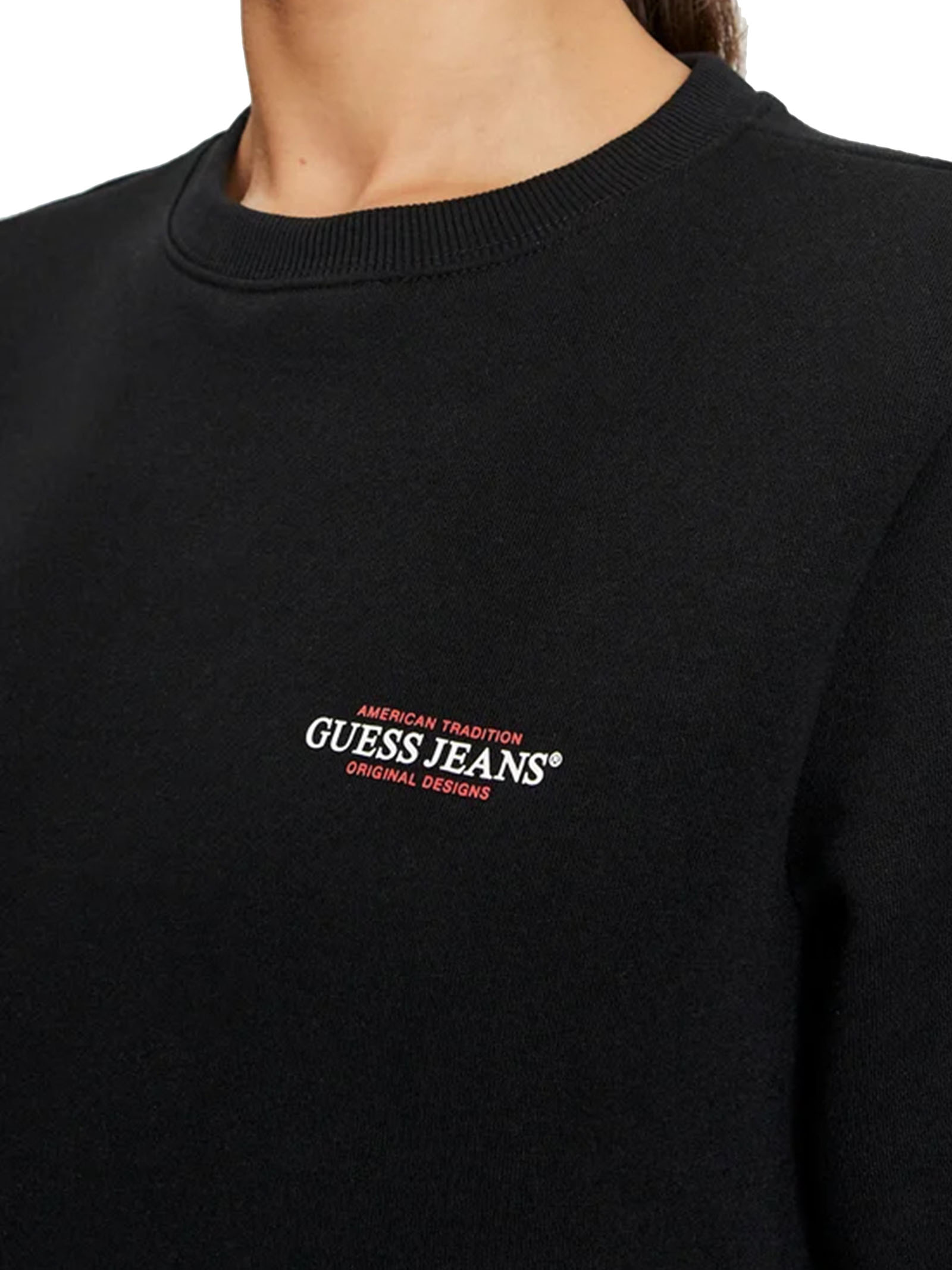 Felpa donna GuessModello: girocolloMateriale: 82% Cotone 18% PoliestereColore: nero