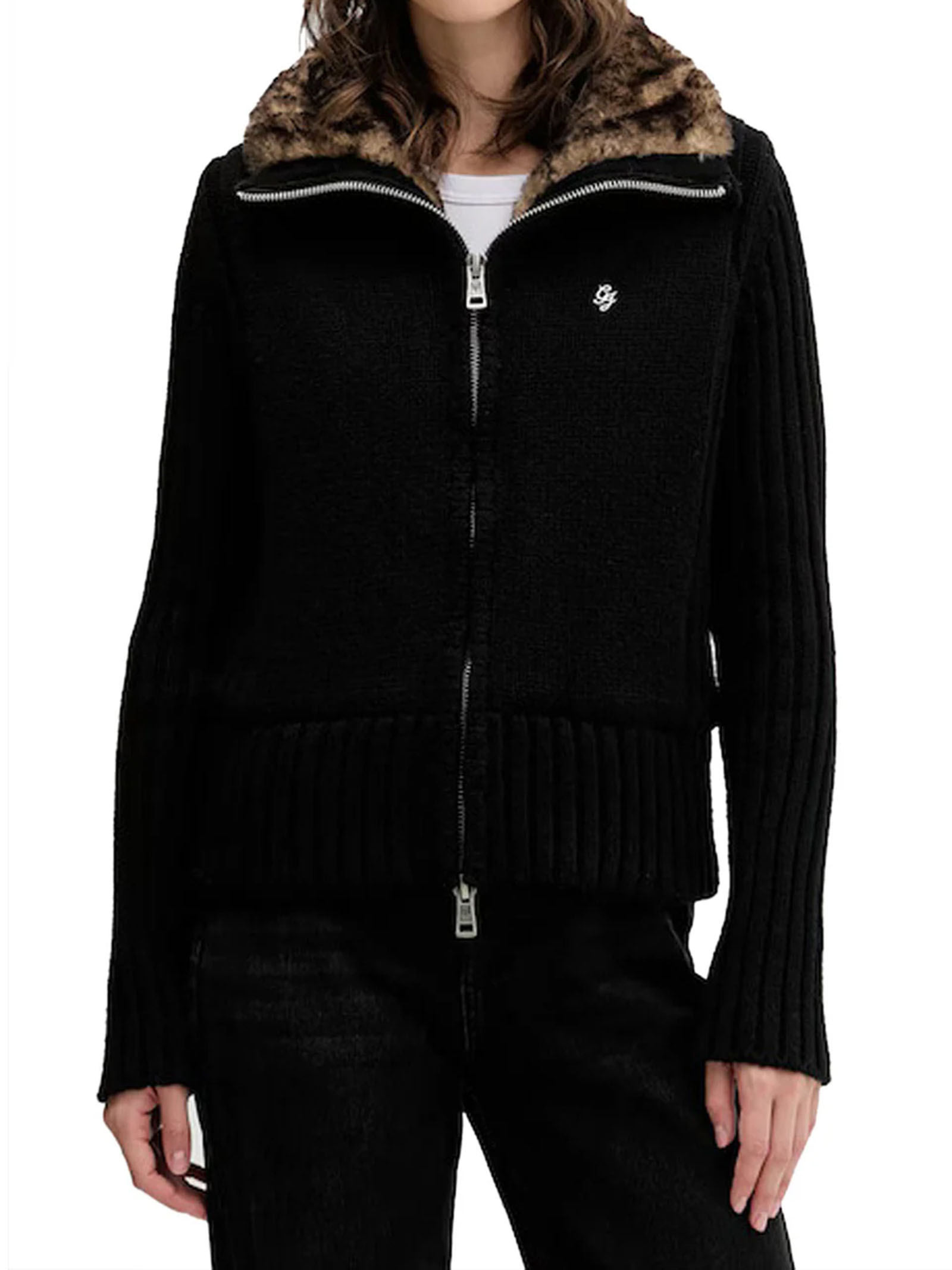 Giacca donna GuessModello: cardigan con cernieraMateriale: 50% Cotone, 28% Lana, 22% PoliammideColore: nero