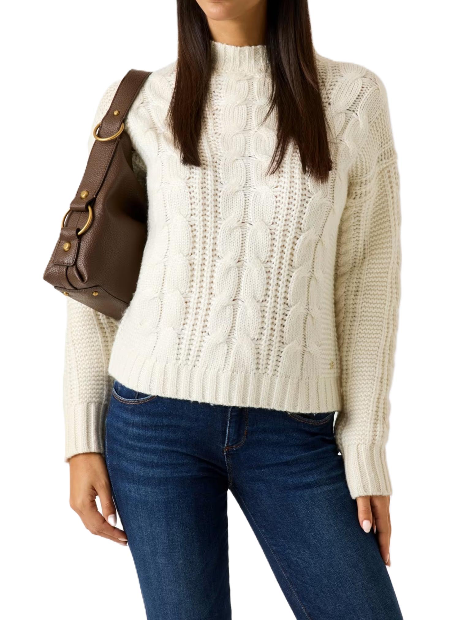 Maglia donna Guess Modello: maglione a trecce Materiale: 48% Lana, 34% Poliestere, 18% Acrilico Colore: bianco