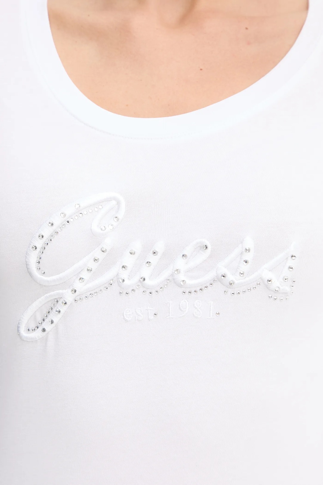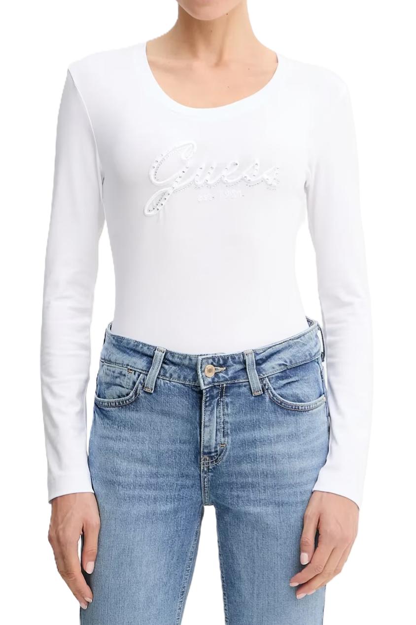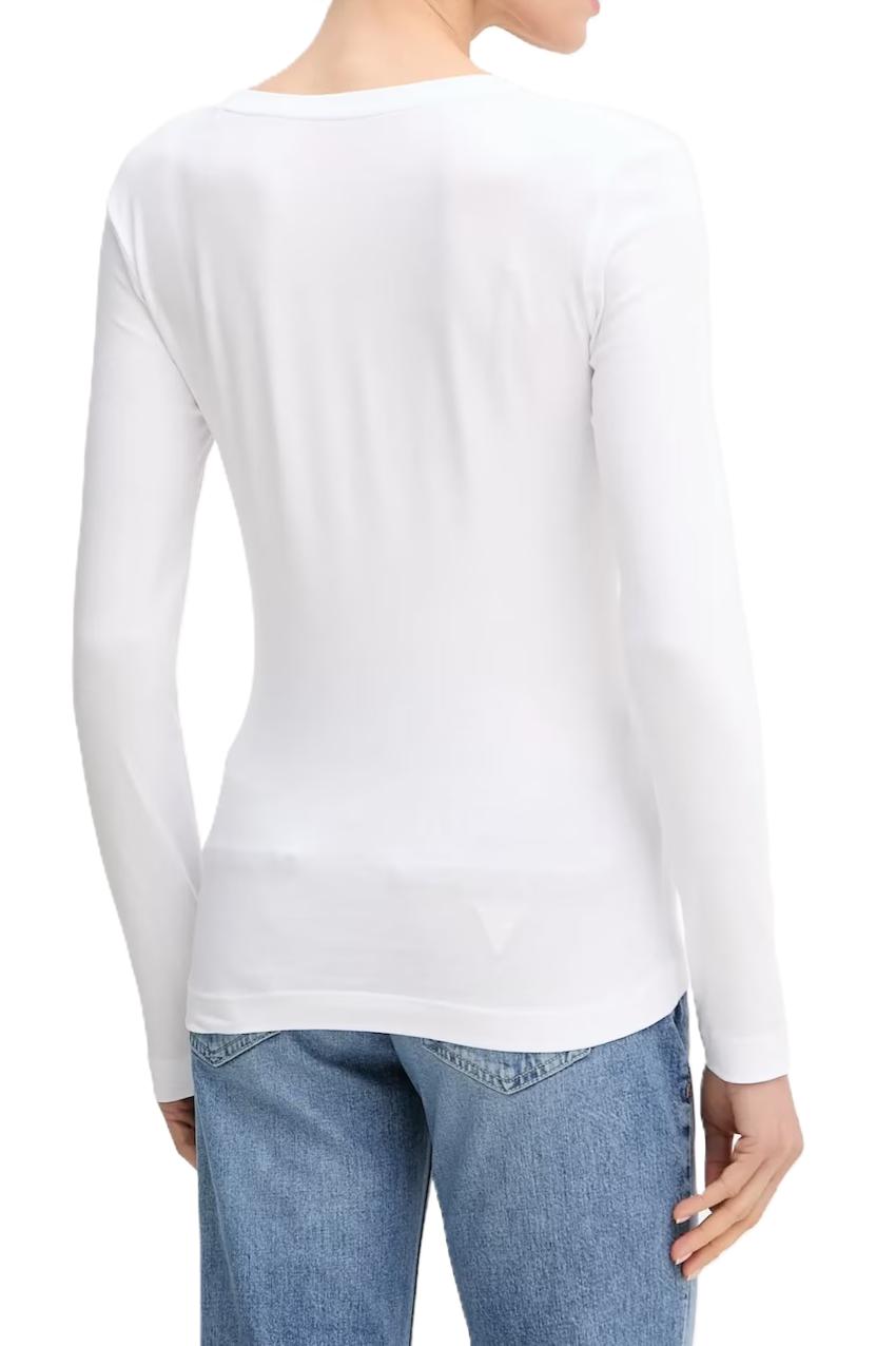 Maglia donna Guess Modello: girocollo Materiale: 95% Cotone, 5% Elastan Colore: bianco