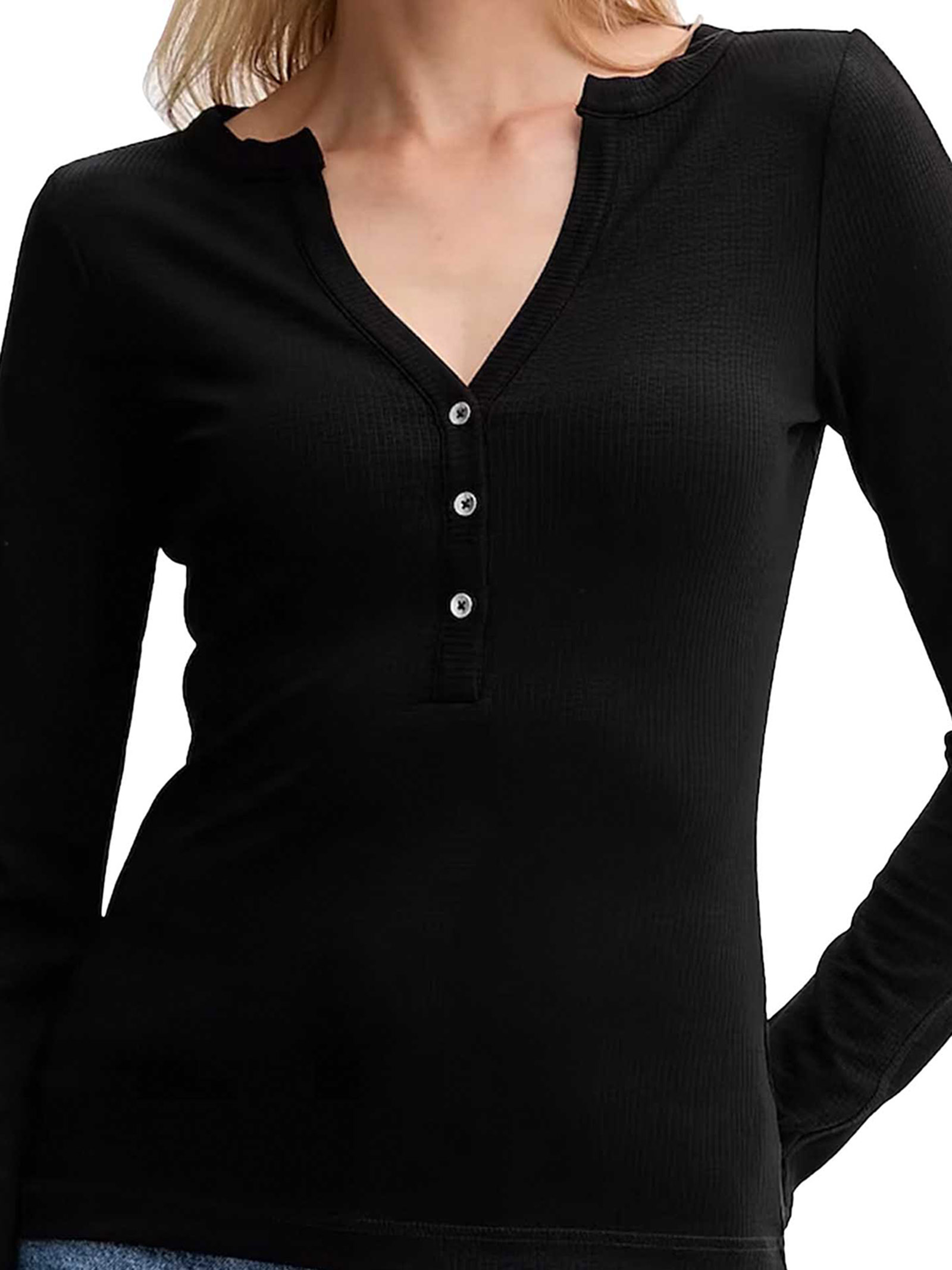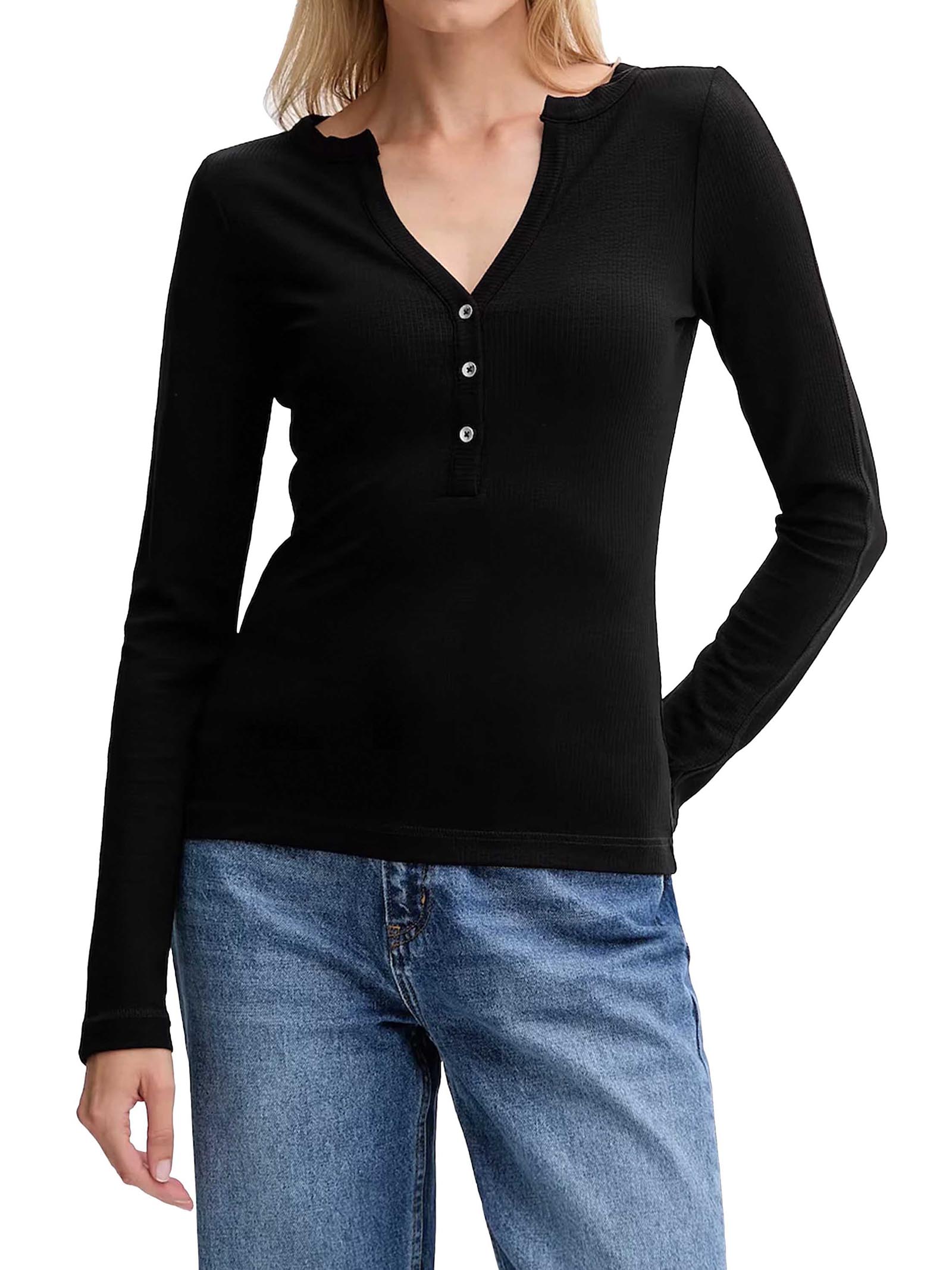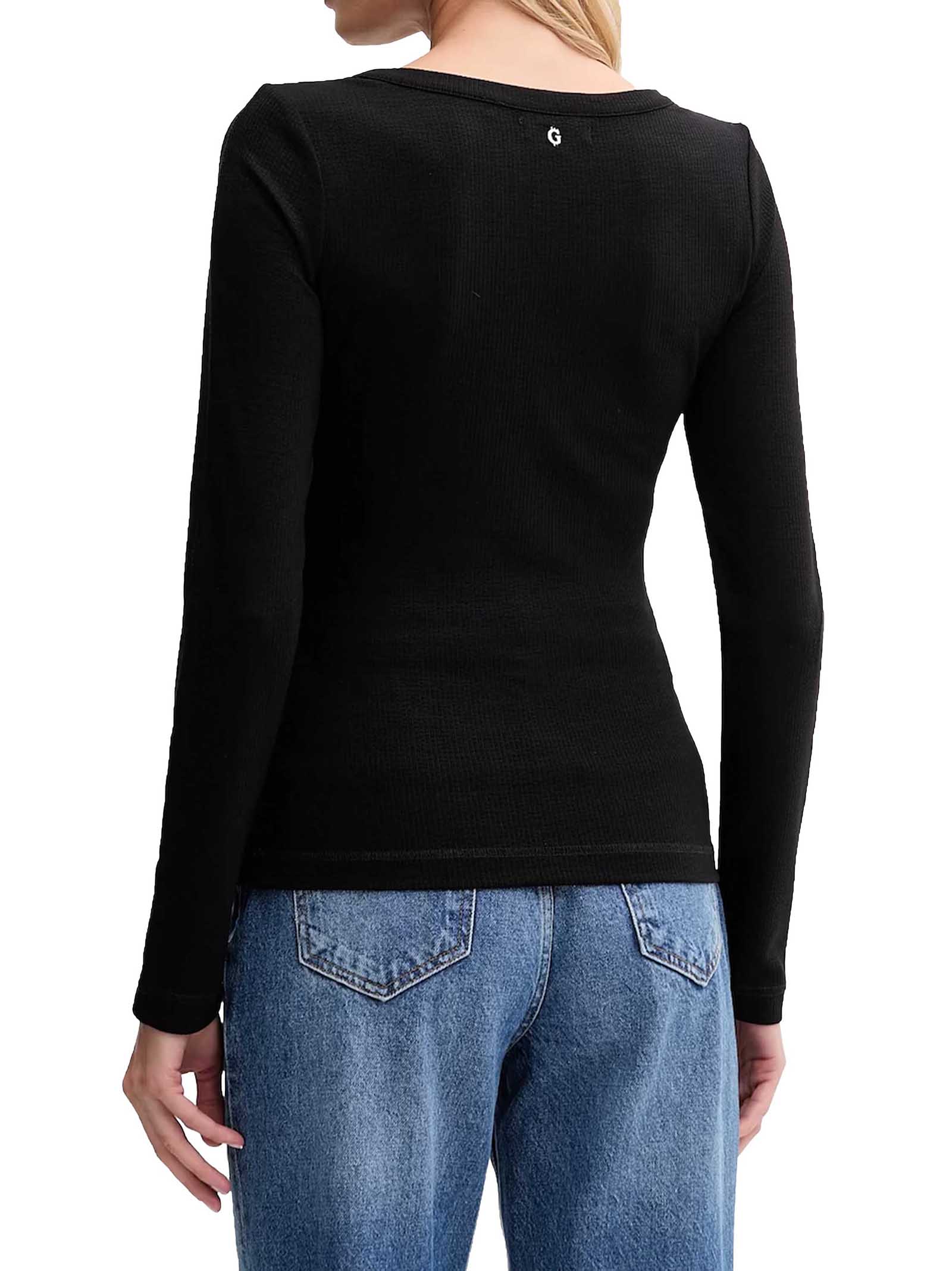 Maglia donna Guess Modello: girocolloMateriale: 59% Viscosa, 34% Poliestere, 7% ElastanColore: nero