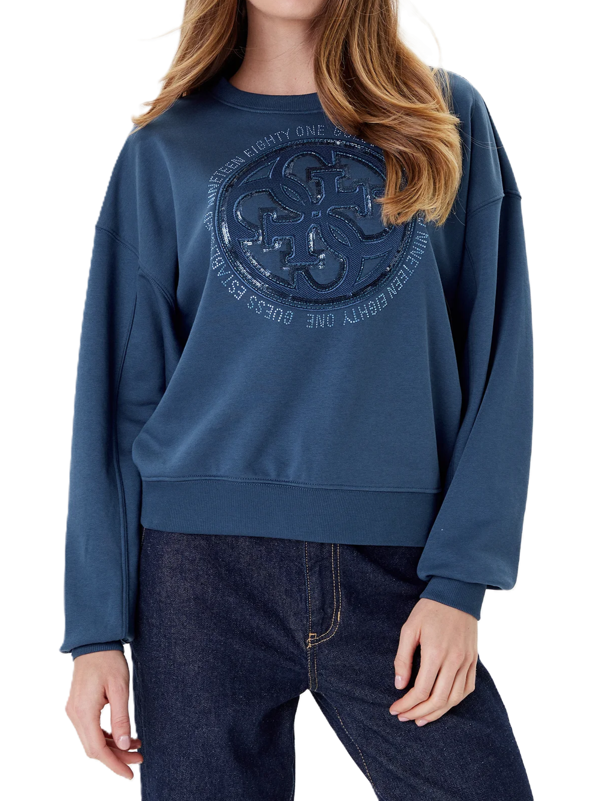 Maglia donna Guess Modello: girocollo Materiale: misto cotone Colore: blu