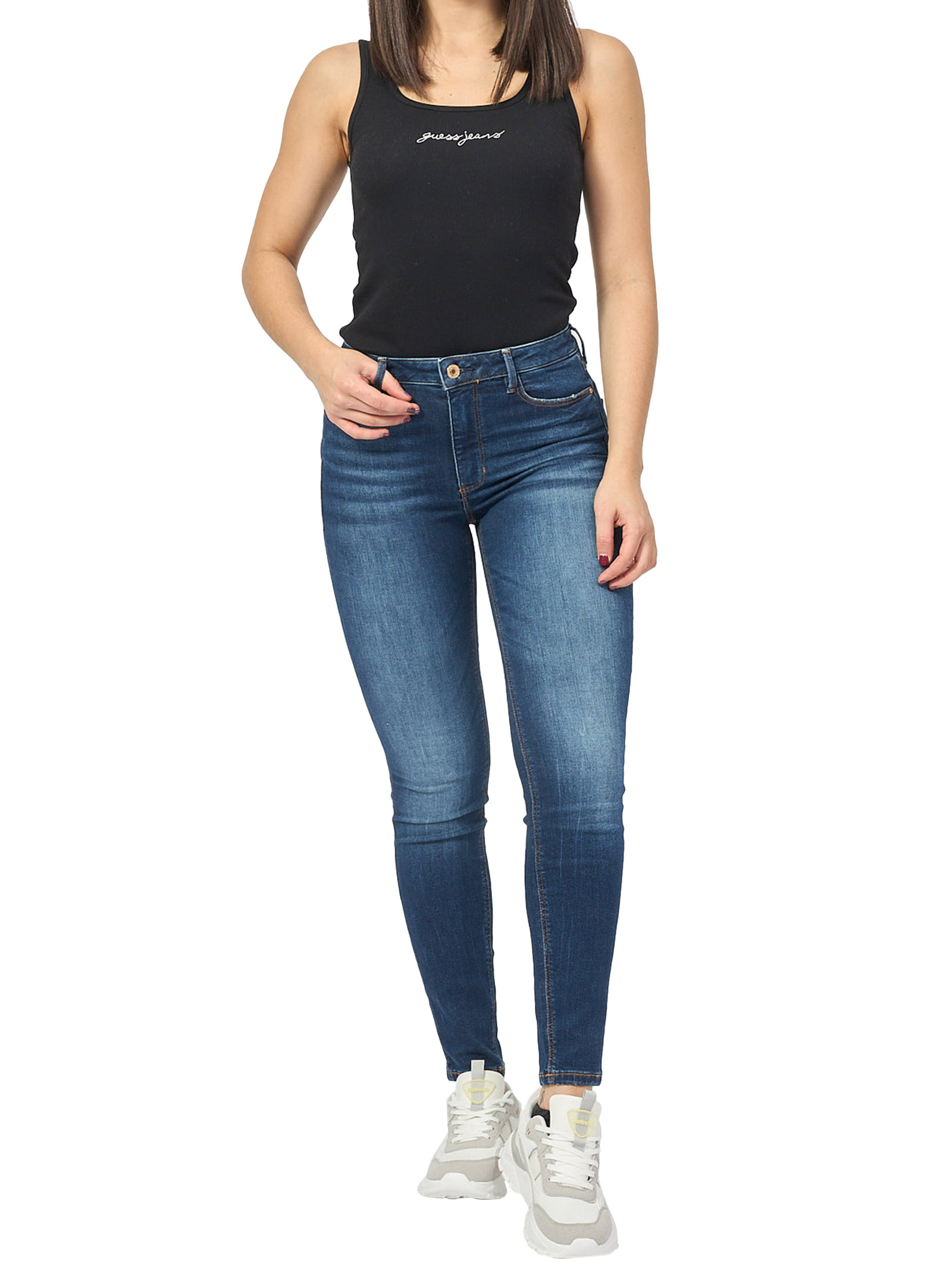 Pantaloni donna Guess Modello: skinny Materiale: 99% cotone, 1% elastan Colore: denim scuro