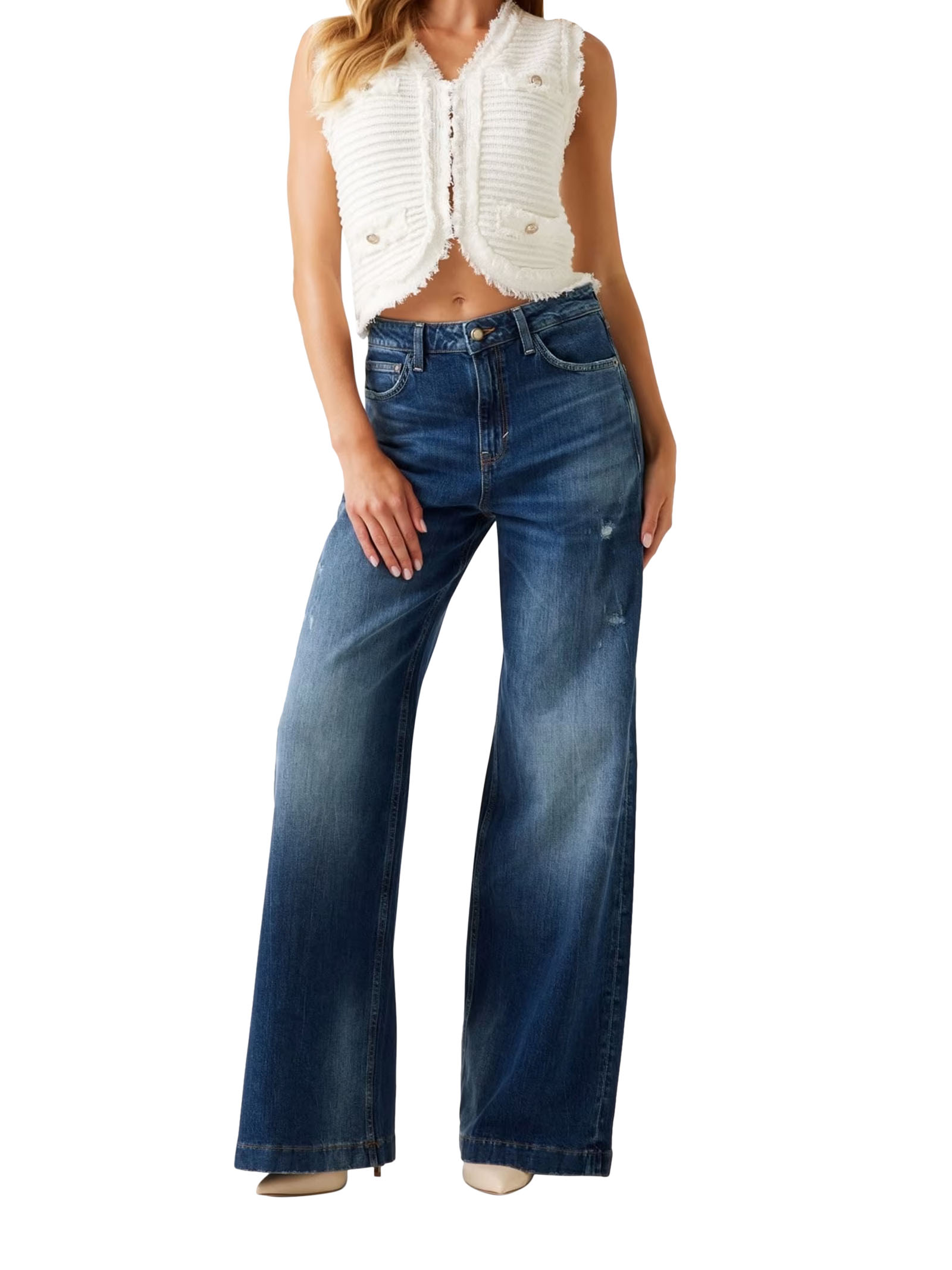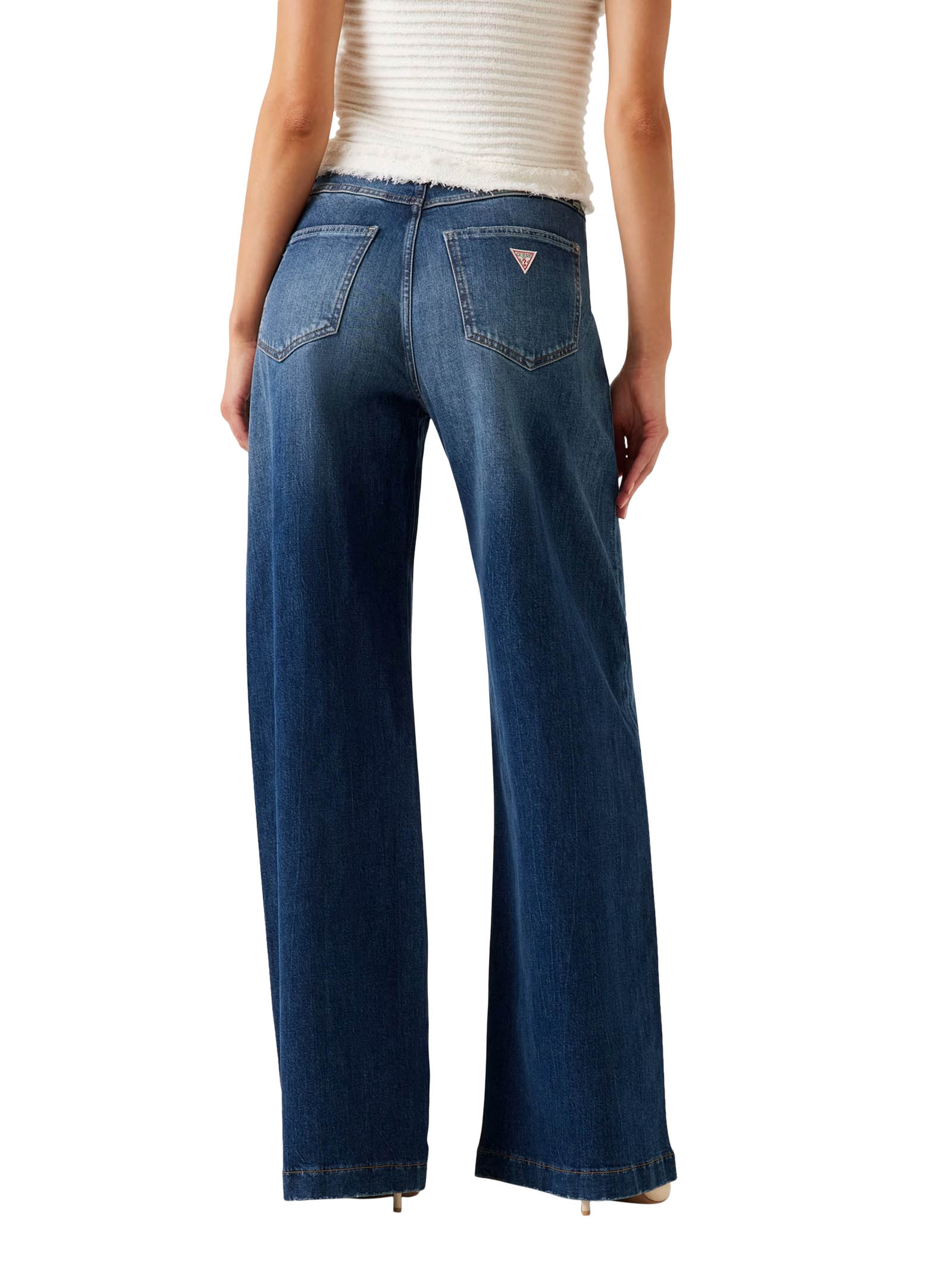 Pantaloni donna GuessModello: gamba ampiaMateriale: 79% Cotone, 20% Lyocell, 1% ElastanColore: denim scuro