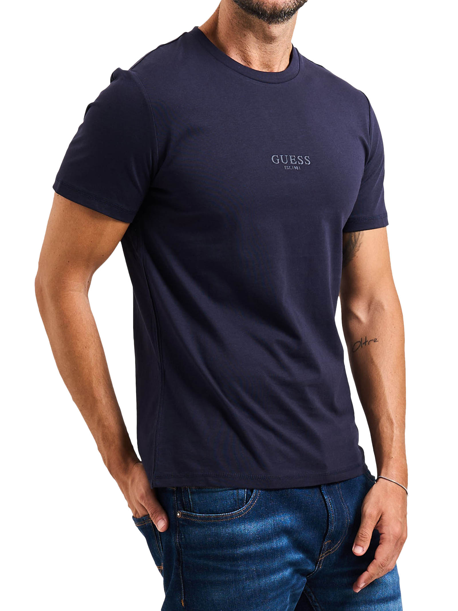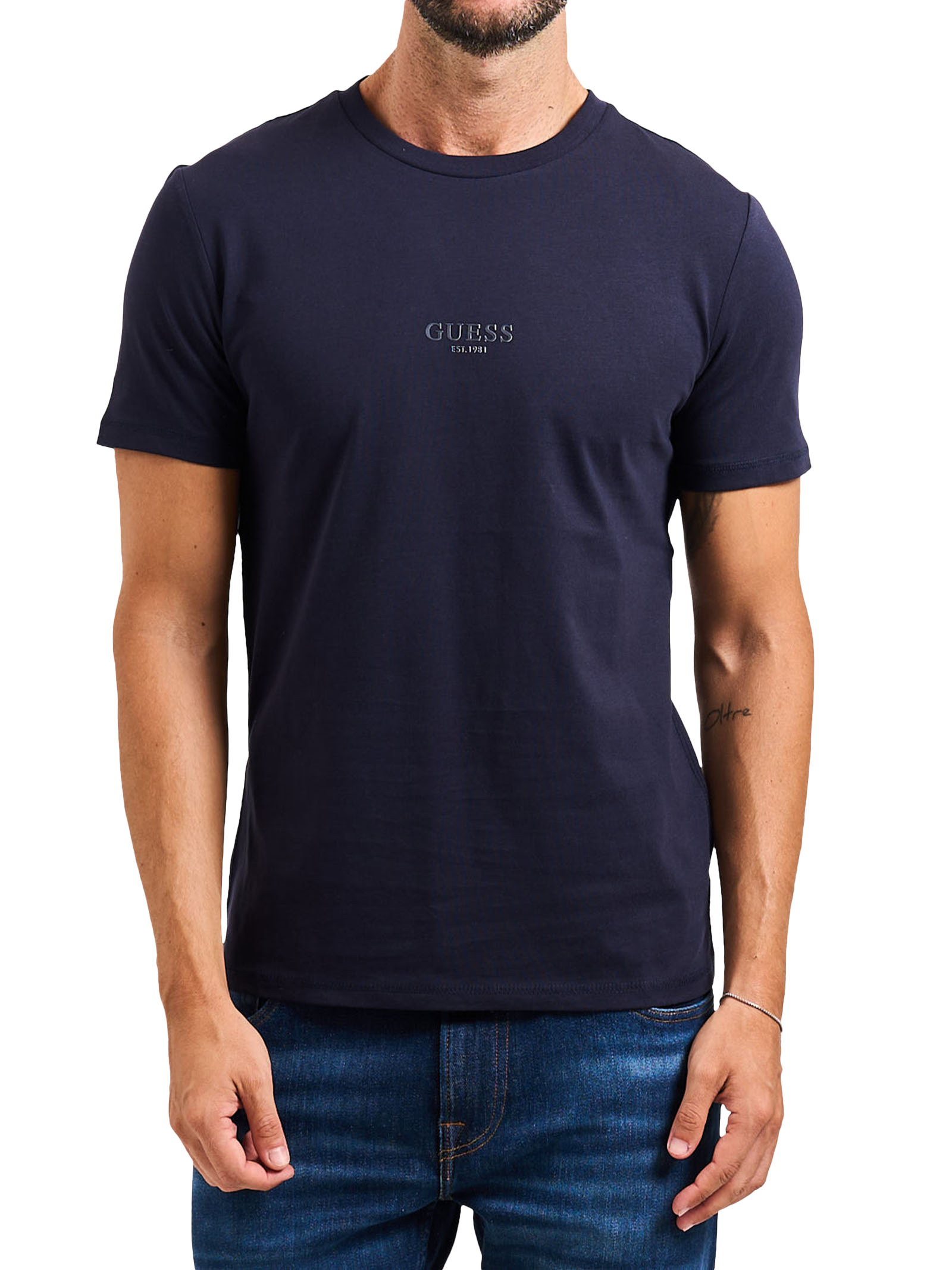 T-shirt uomo GuessModello: girocollo Materiale: 100% Cotone Colore: blu