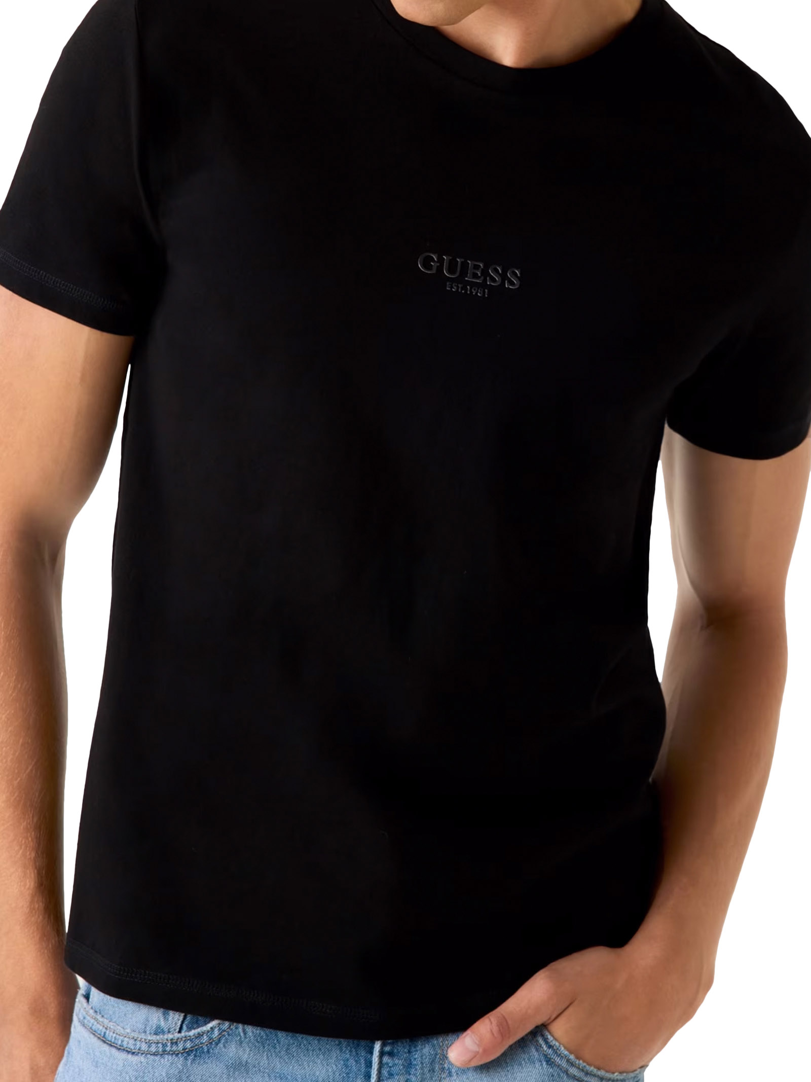 T-shirt uomo GuessModello: girocollo Materiale: 100% Cotone Colore: nero