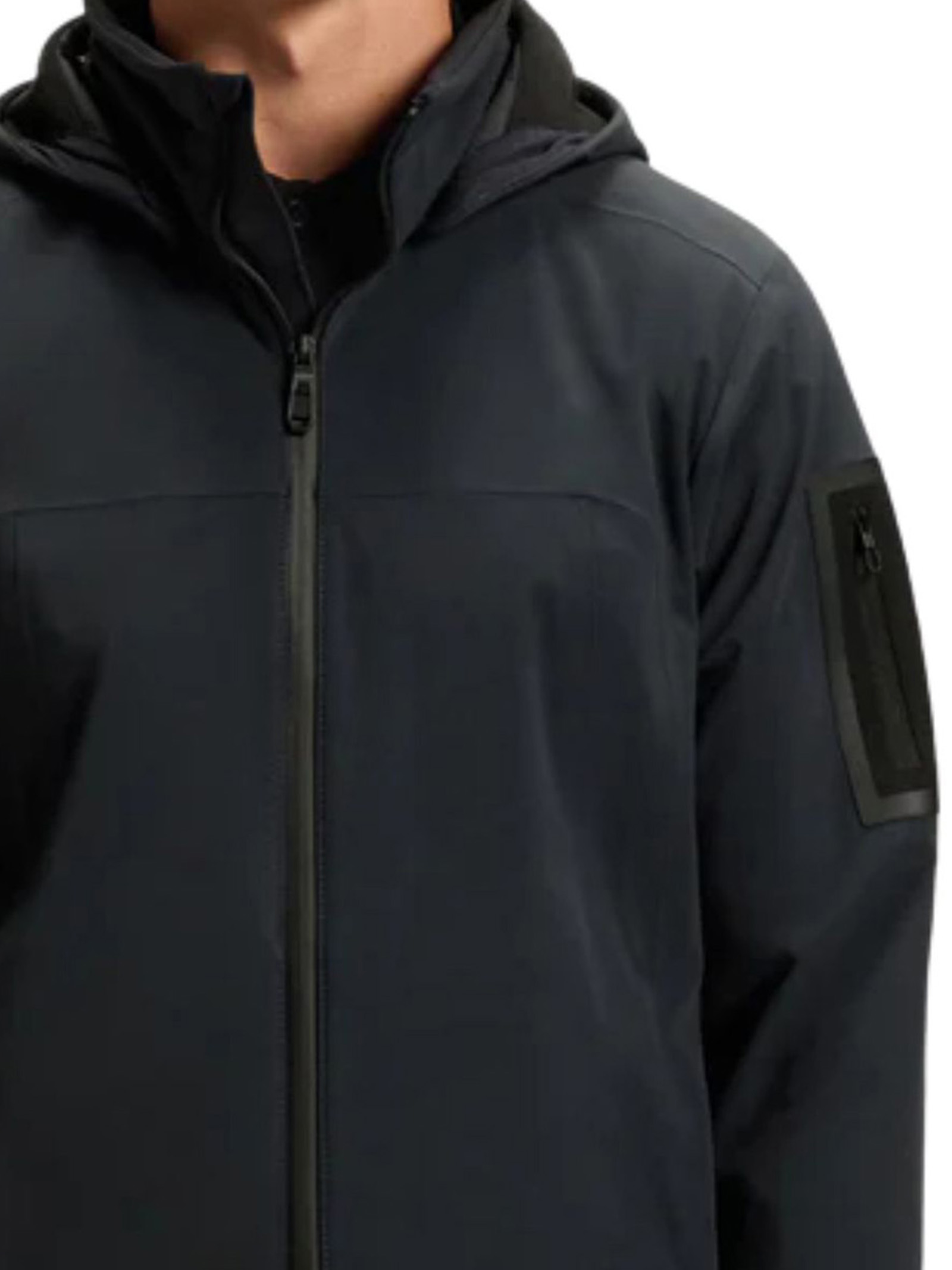 Giubbotto uomo Hugo BossModello: con cerniera e cappuccio Materiale: 84% poliammide, 16% elastaneColore: nero