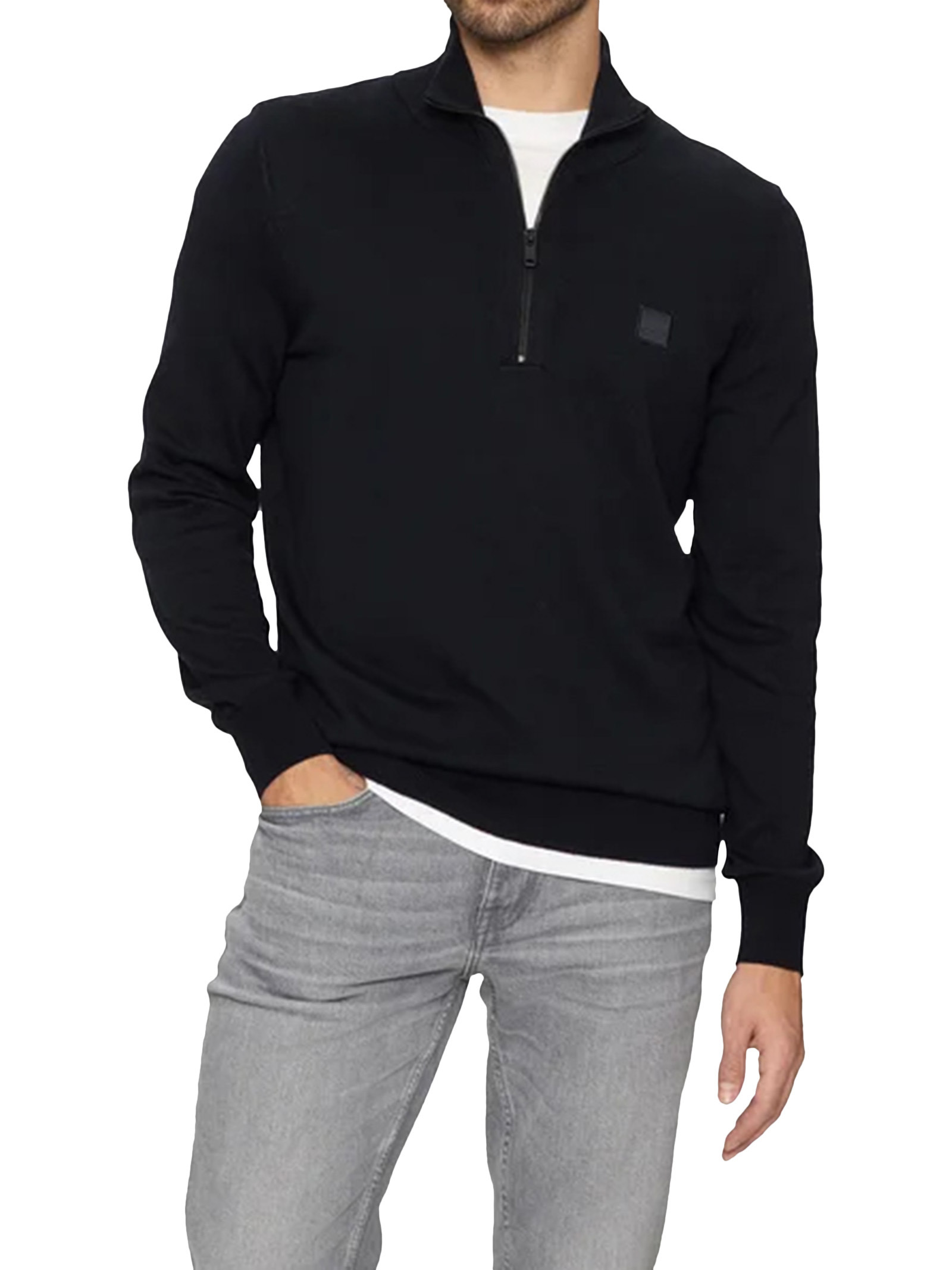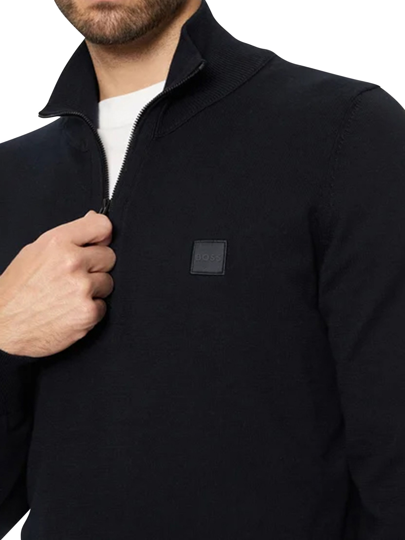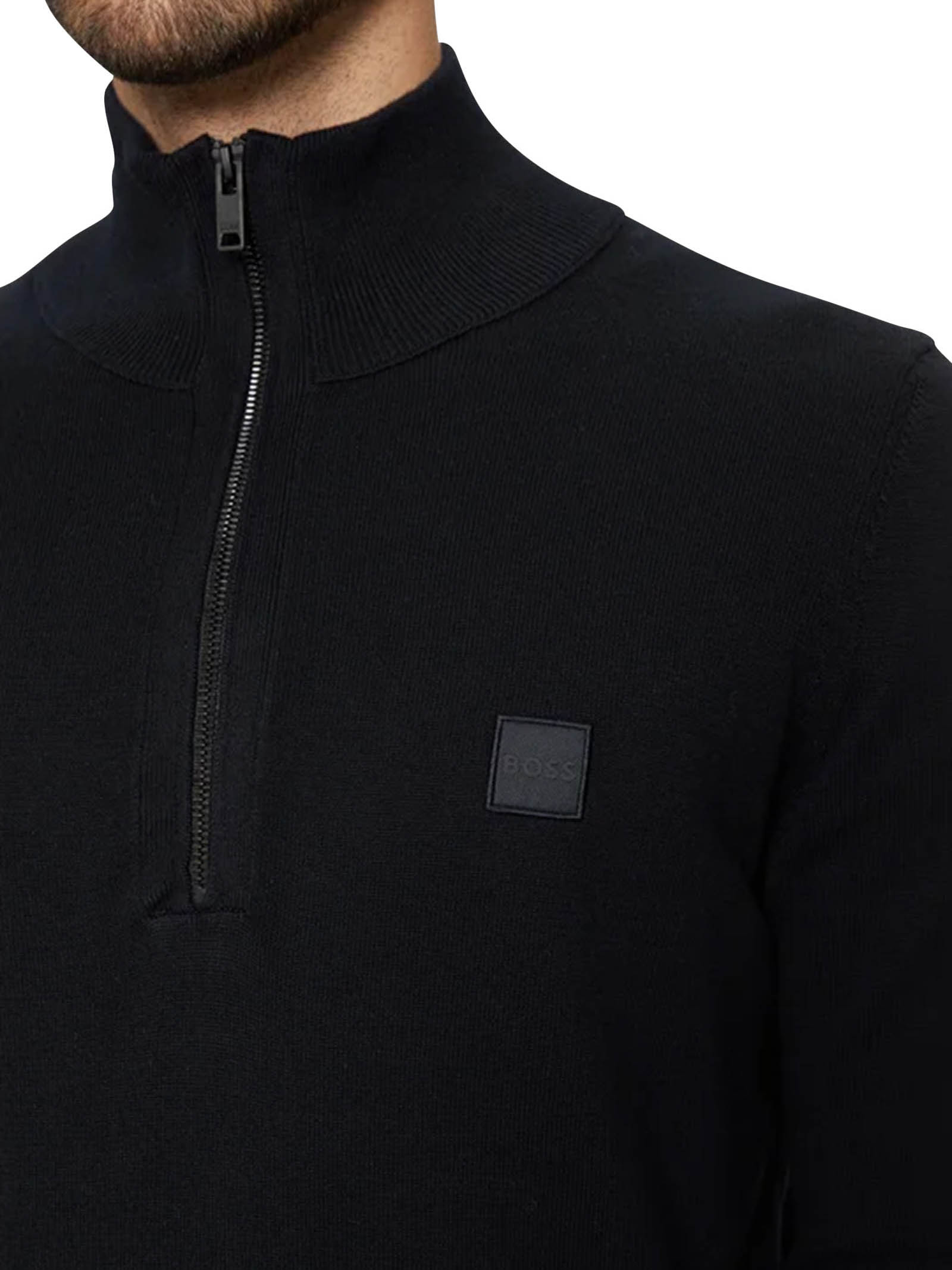 Maglione uomo Hugo BossModello: dolcevita con zipMateriale: 95% cotone, 5% cashmereColore: blu scuro