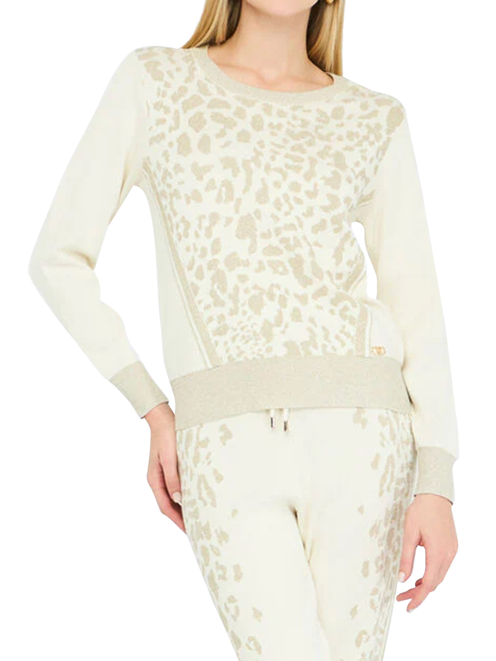 Felpa donna Liu JoModello: girocolloMateriale: 64% Viscosa, 16% Poliammide, 13% Poliestere, 7% Poliestere metallizzatoColore: bianco