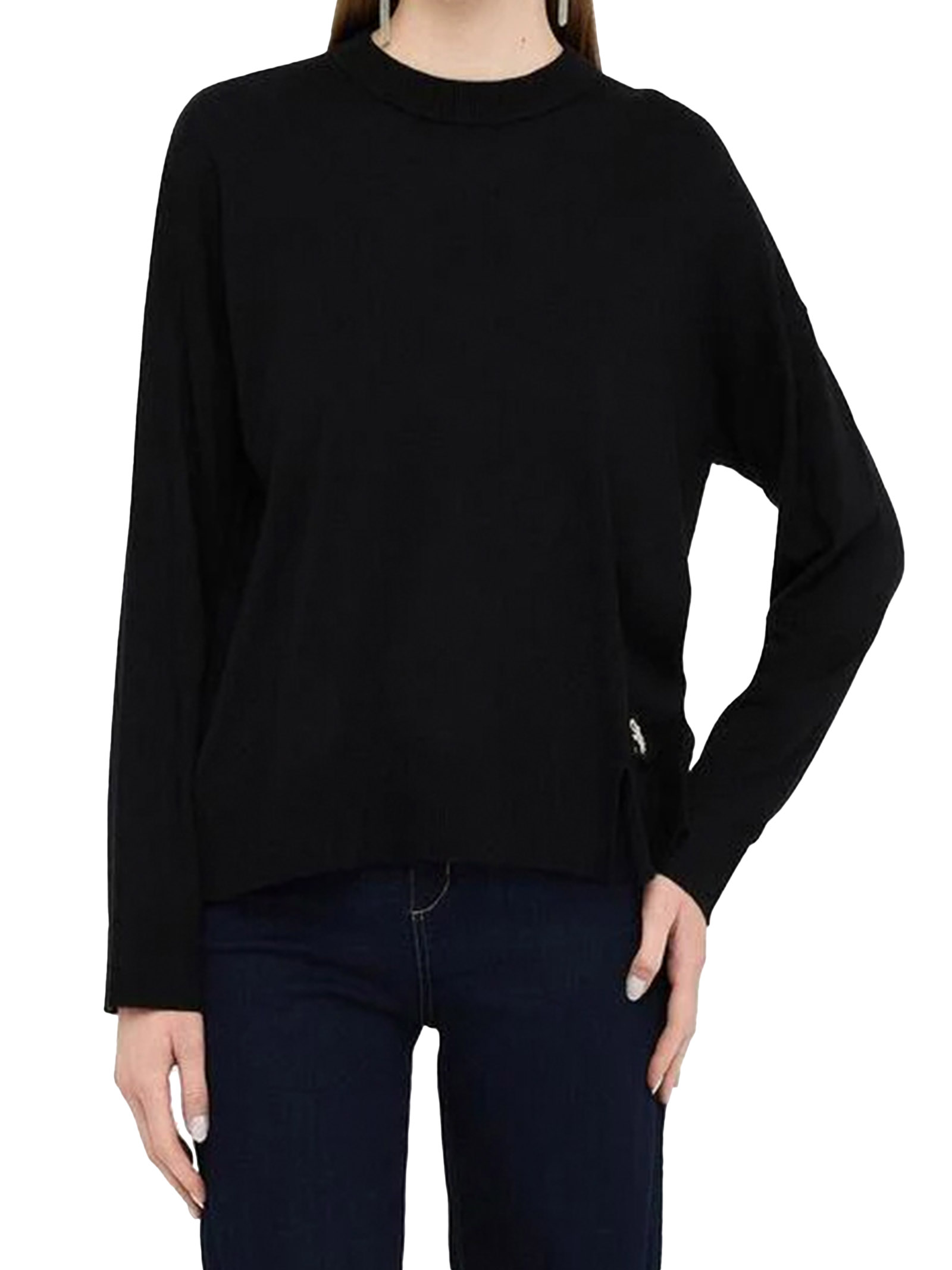 Maglia donna Liu JoModello: girocolloMateriale: 35% viscosa, 35% lana, 30% poliammideColore: nero