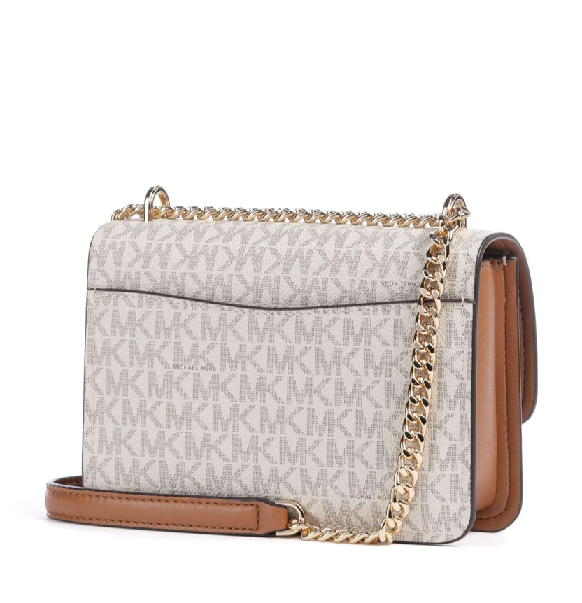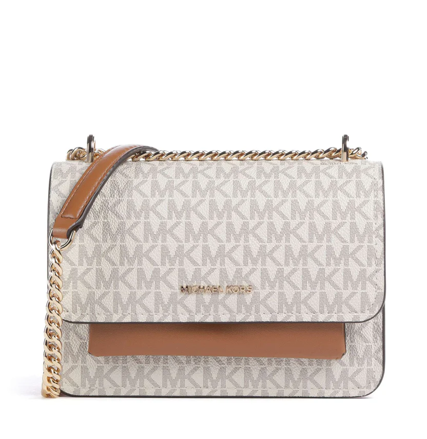 Borsa donna Michael Kors Modello: borsa a tracolla Claire Dimensioni: 19x7,6x14 Materiale: 89,4% tela rivestita/9,6% poliestere/1% poliuretano Colore: bianco