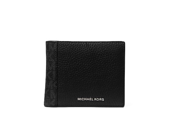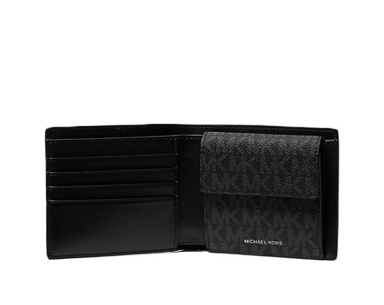 Portafoglio uomo Michael Kors Modello: portafoglio con portamonete Hudson Materiale: 100% pelle Finitura: 89,4% tela rivestita/9,6% poliestere/1% poliuretano Colore: nero