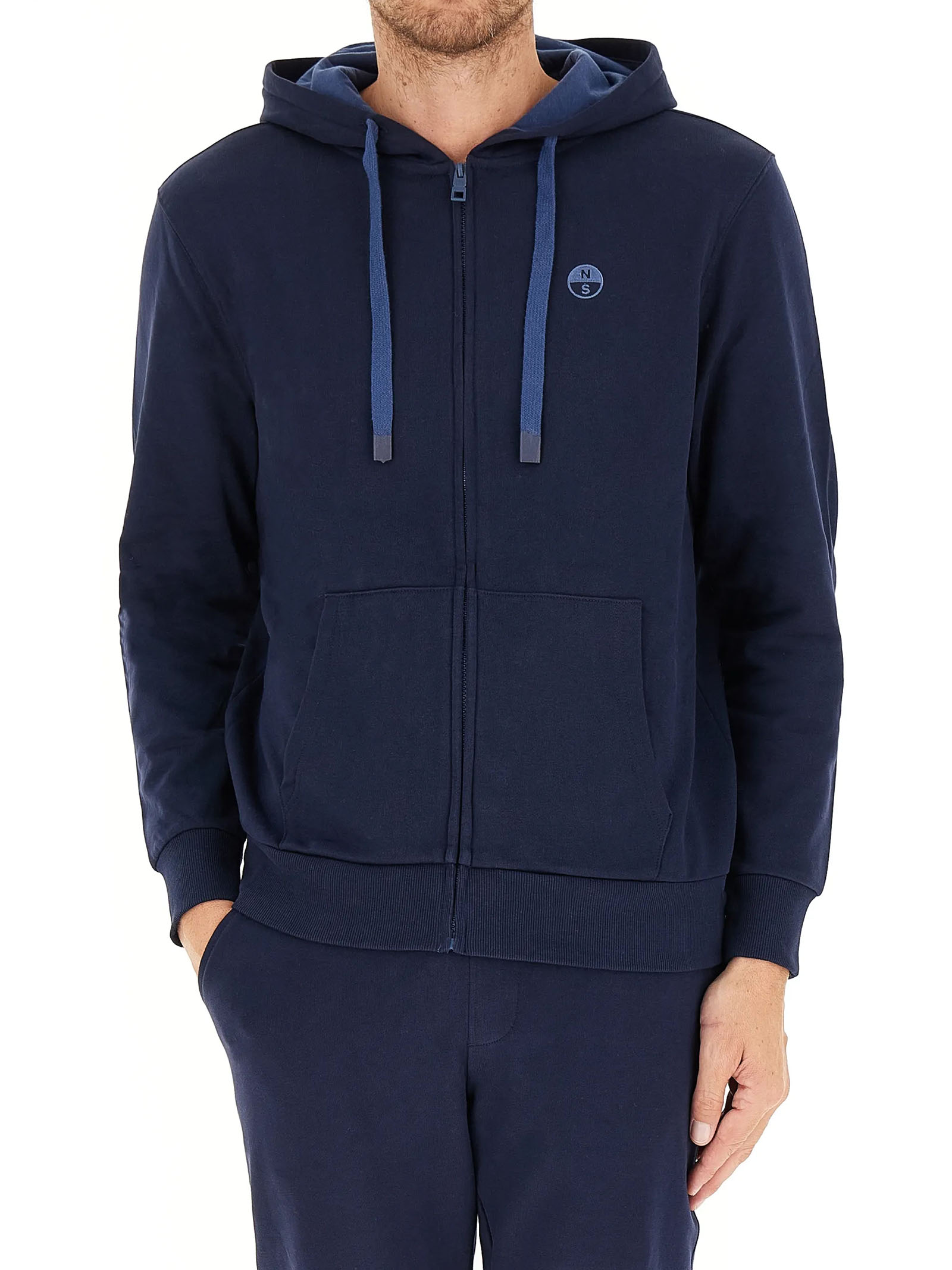 Felpa uomo North SailsModello: con zip e cappuccioMateriale: 100% cotoneColroe: blu