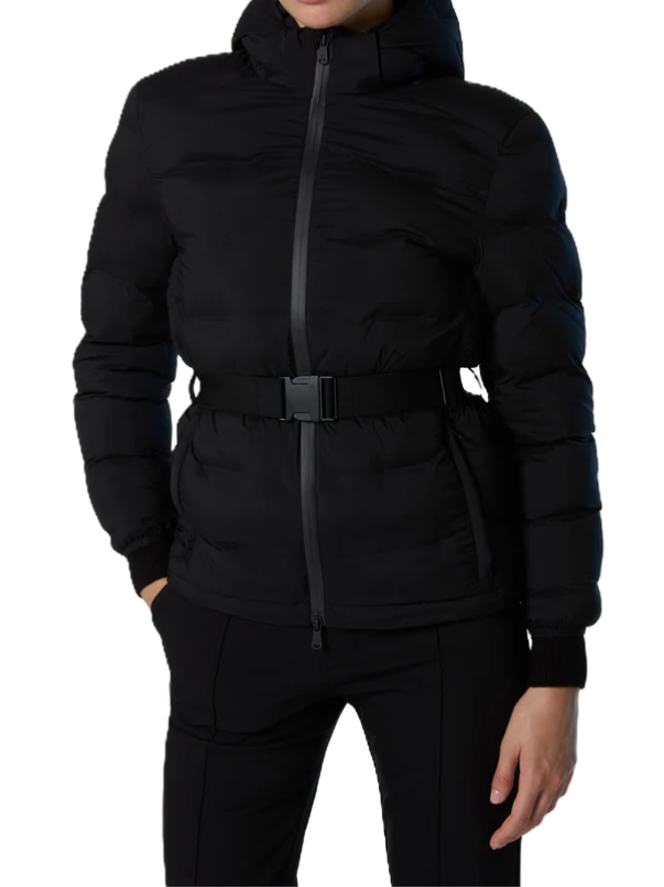 Giubbino donna North Sails Modello: Bowline, cappuccio e cintura rimovibile Materiale: 88% poliamide 12% elastan Colore: nero