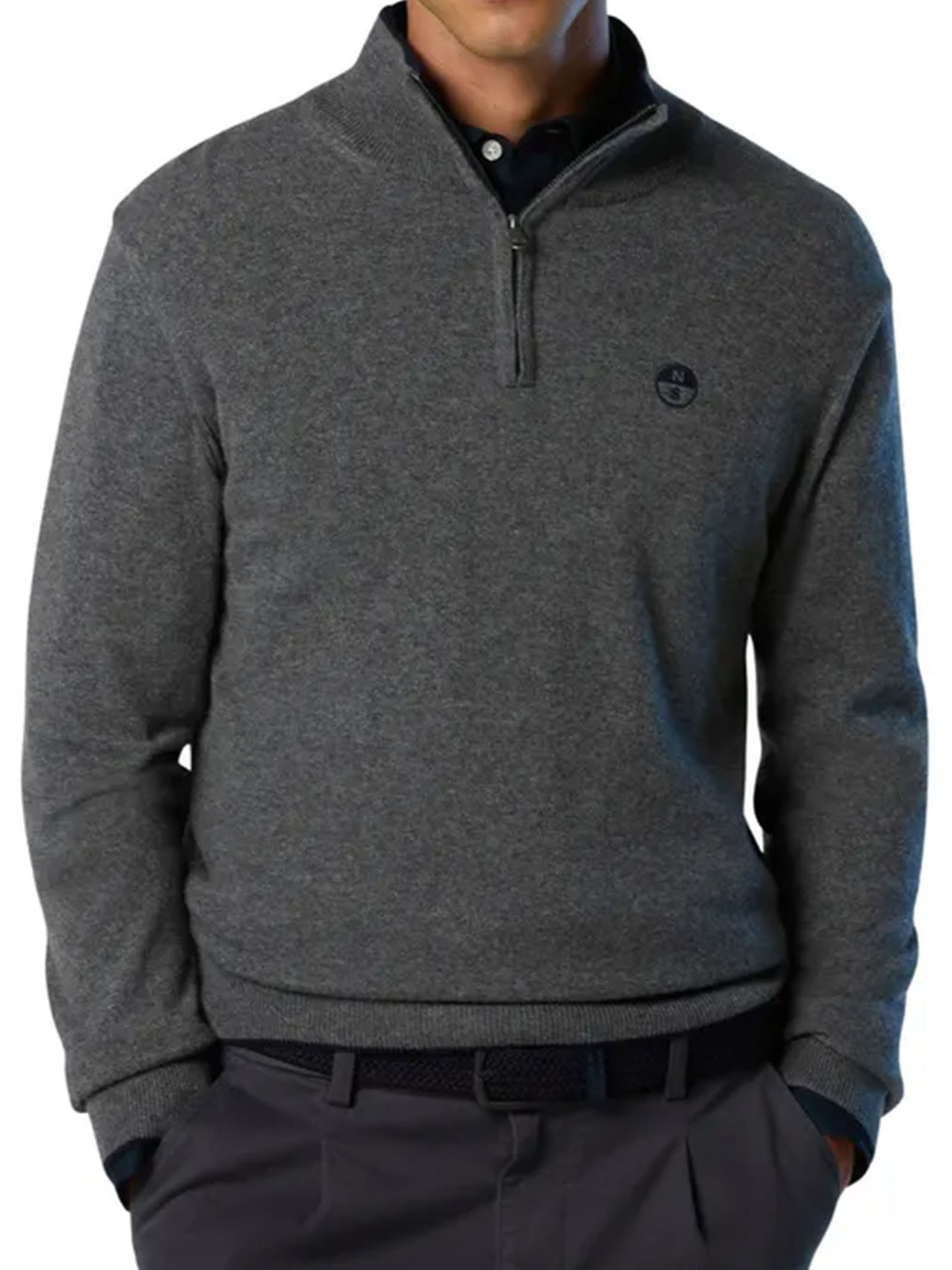 Maglia uomo North SailsModello: con zip e collo altoMateriale: 30% poliammide, 30% lana, 35% viscosa, 5% cashmereColore: grigio