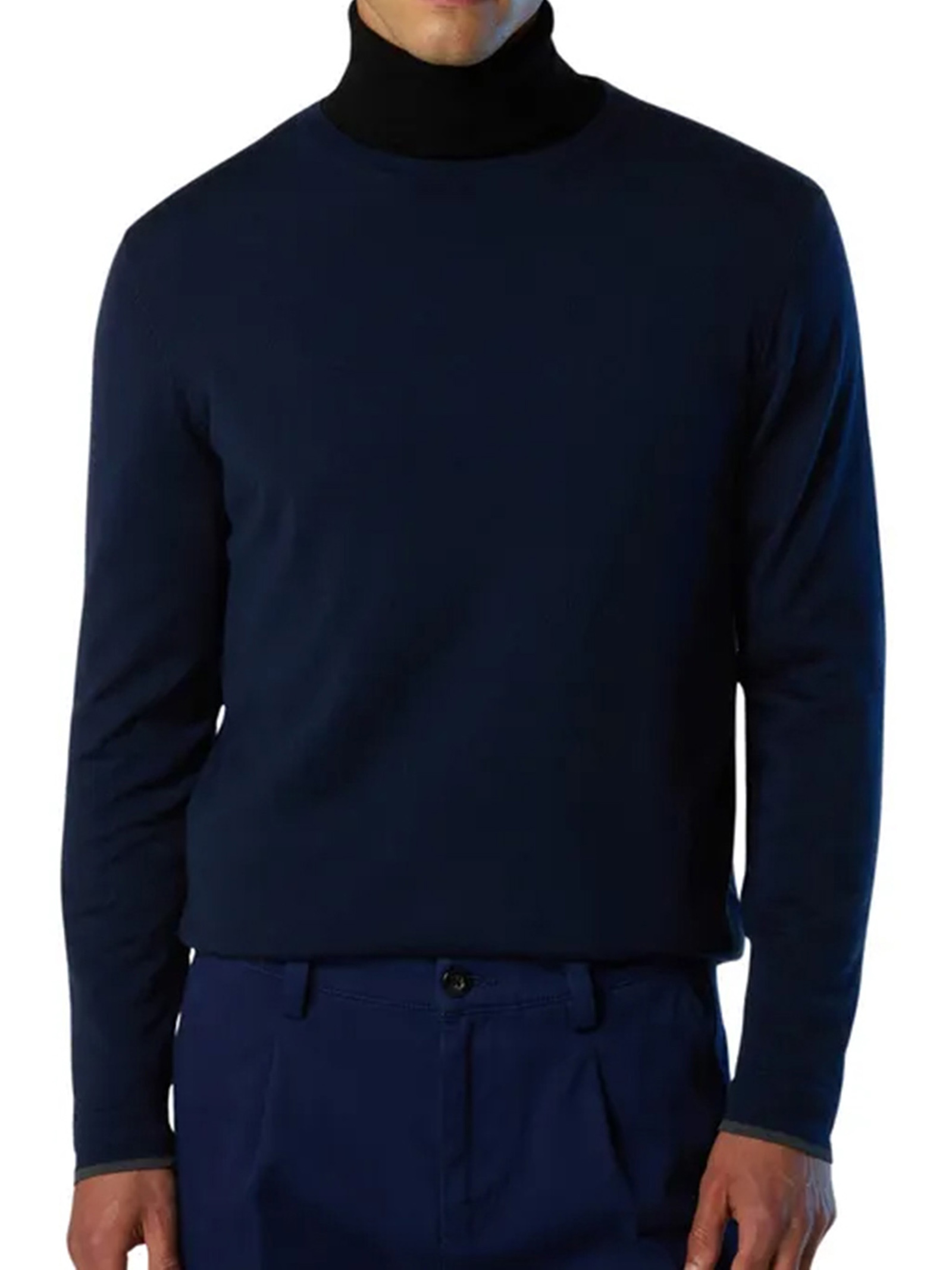 Maglia uomo North SailsModello: dolcevitaMateriale: 30% poliammide, 30% lana, 35% viscosa, 5% cashmereColore: nero/blu