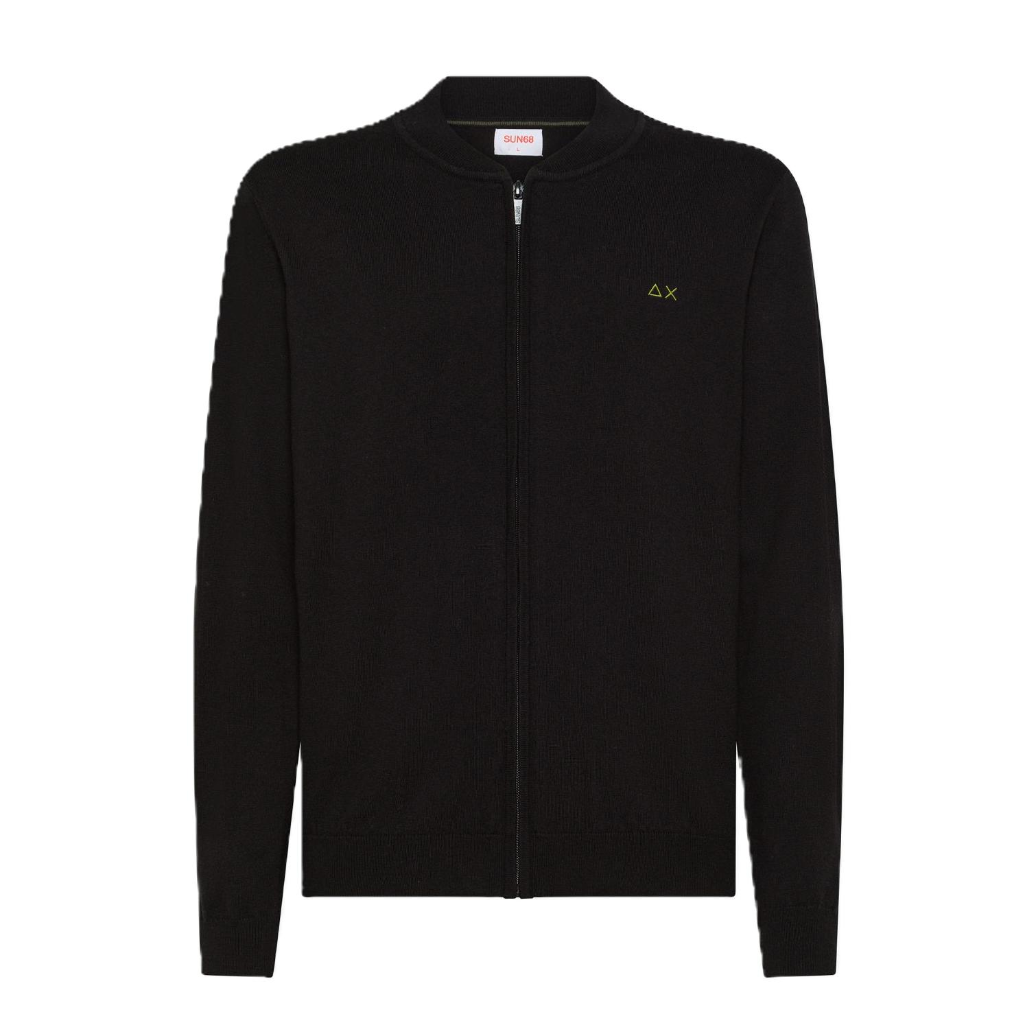 Maglia uomo Sun 68 Modello: cardigan con zip e collo bomber Materiale: 50% lana 50% cotone Colore: nero