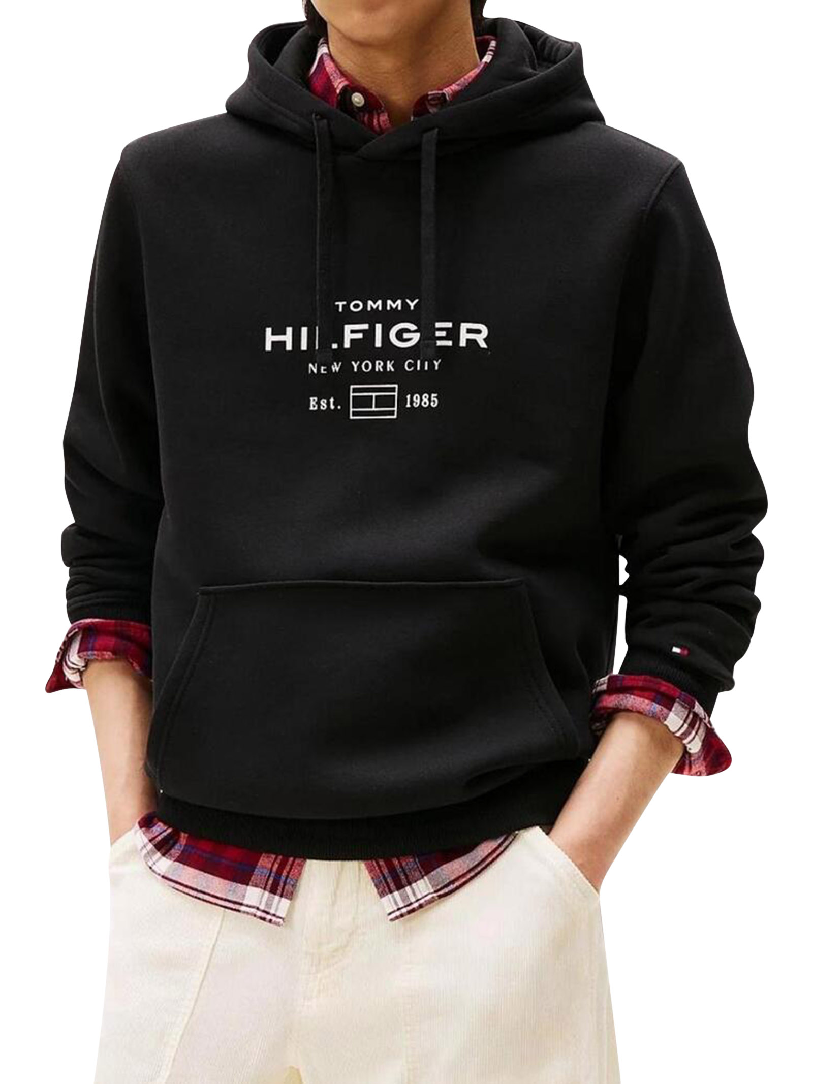 Felpa uomo Tommy HilfigerModello: con cappuccioMateriale: 63% cotone rigenerato, 37% poliestere riciclatoColore: nero
