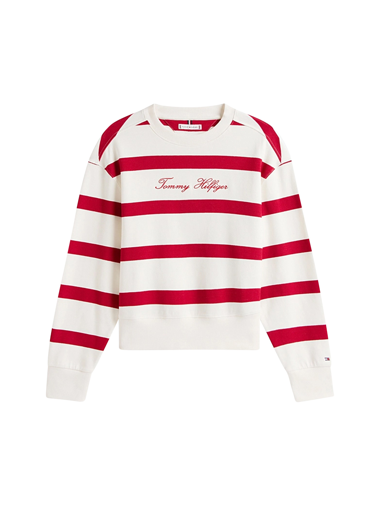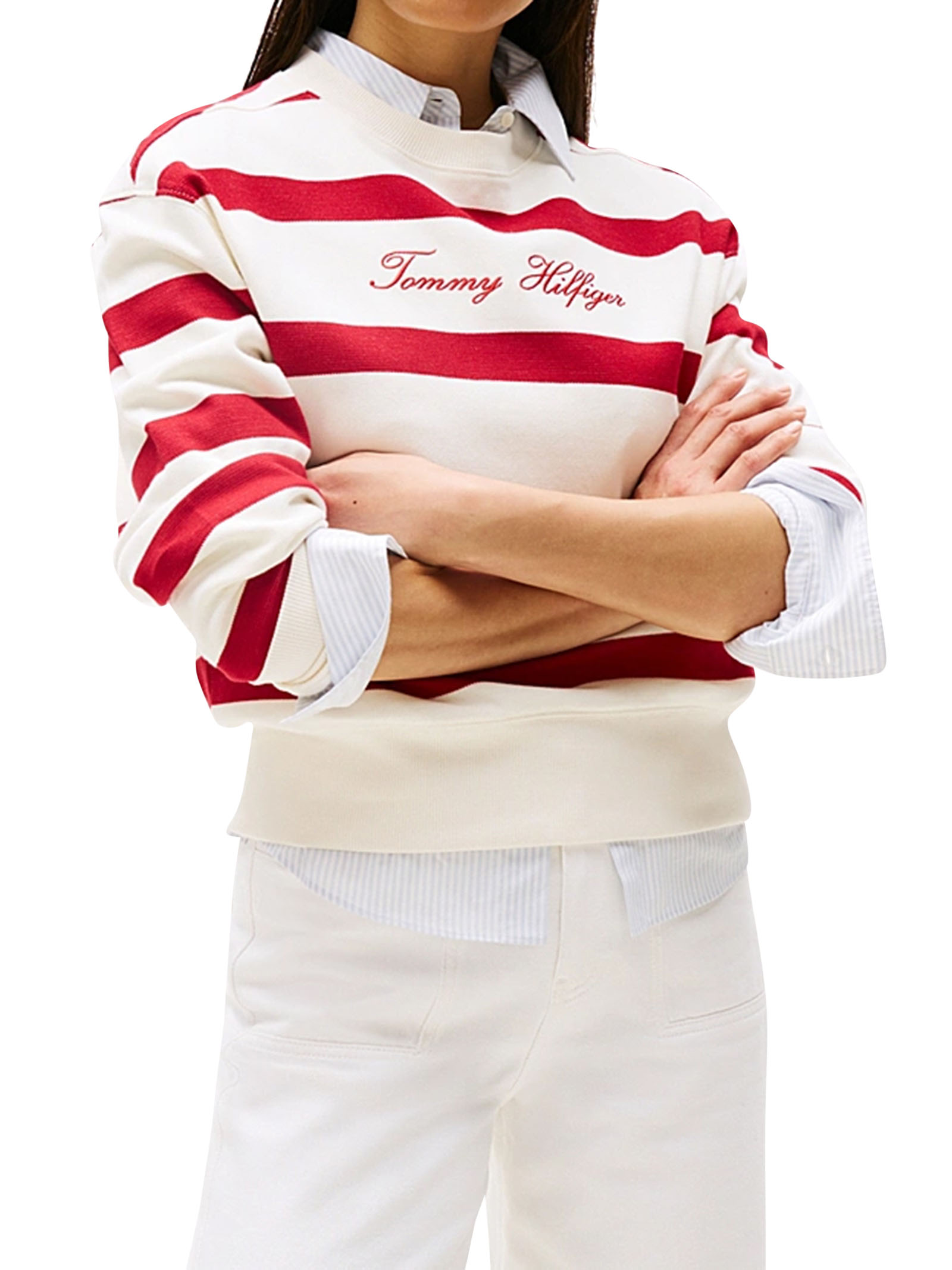 Maglia donna Tommy Hilfiger Modello: girocolloMateriale: 85% cotone, 15% nylonColore: bianco/rosso