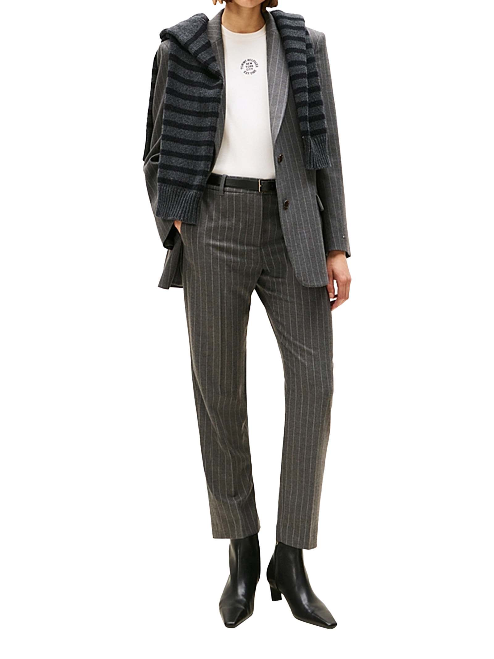 Pantaloni donna Tommy HilfigerModello: taglio drittoMateriale: 63% poliestere, 34% viscosa, 3% elastanColore: grigio