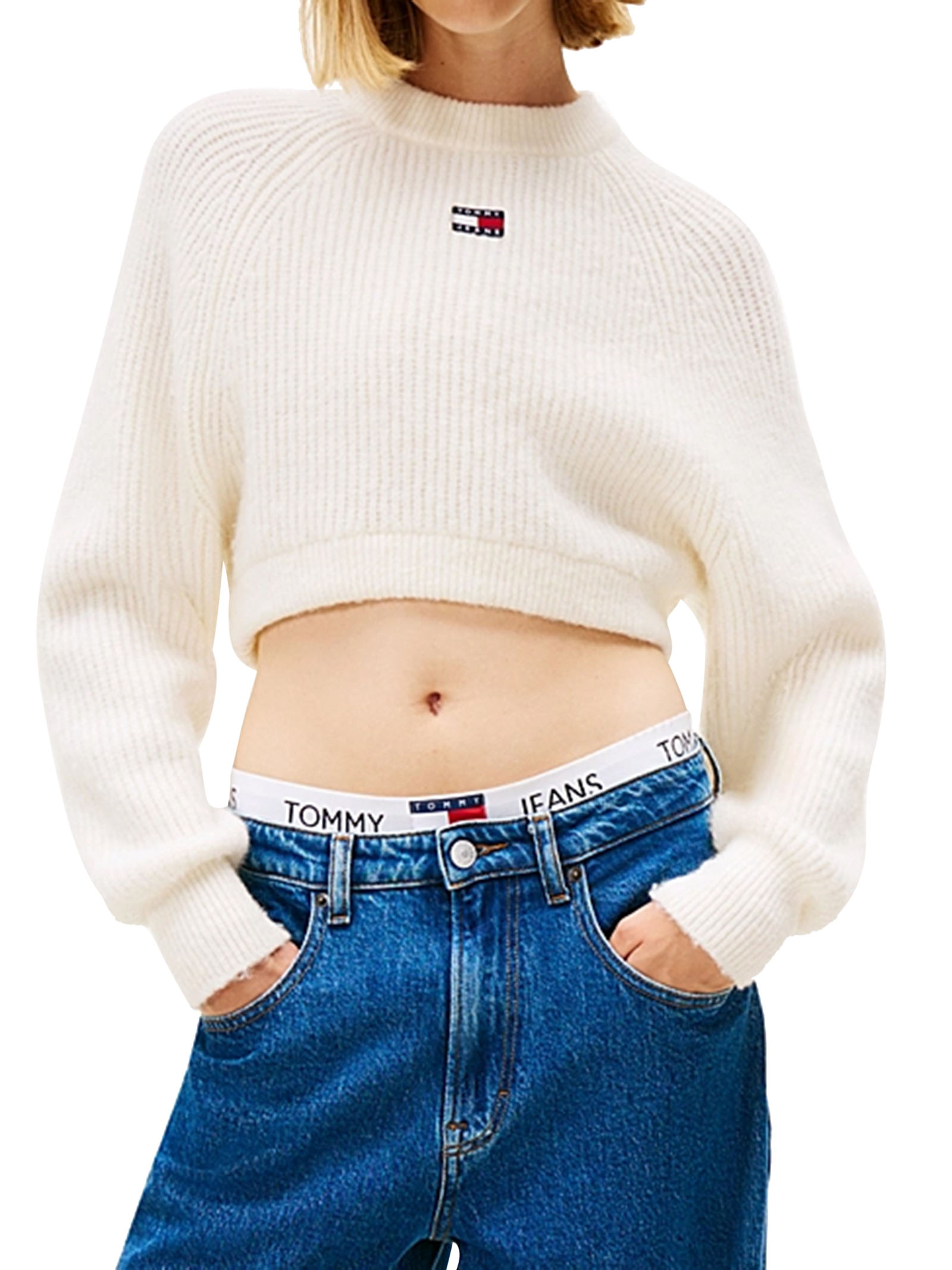 Pullover donna Tommy HilfigerModello: girocolloMateriale: 53% poliestere, 38% nylon, 9% lanaColore: bianco