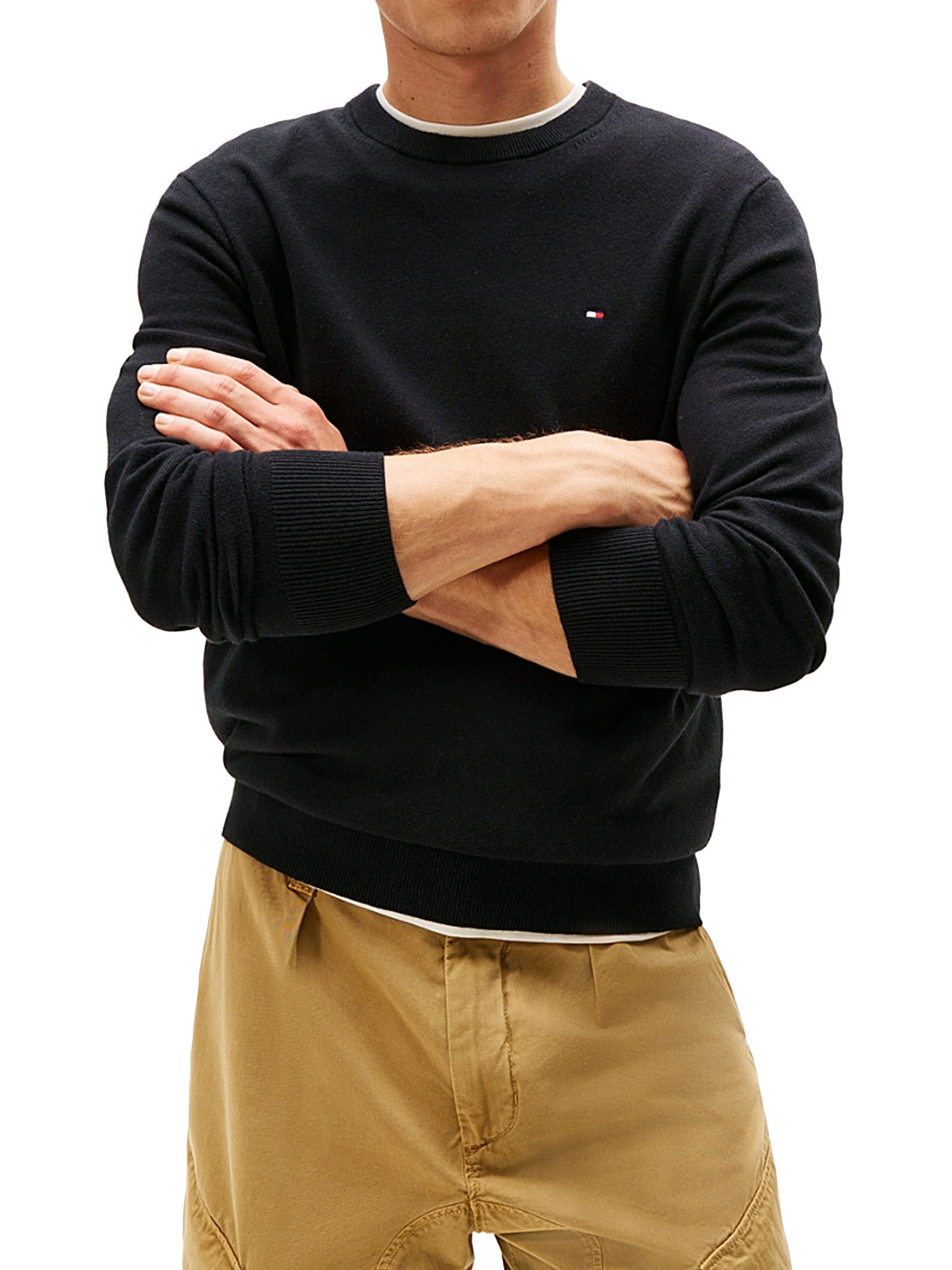 Pullover uomo Tommy HilfigerModello: girocolloMateriale: 92% cotone, 8% cashmereColore: nero