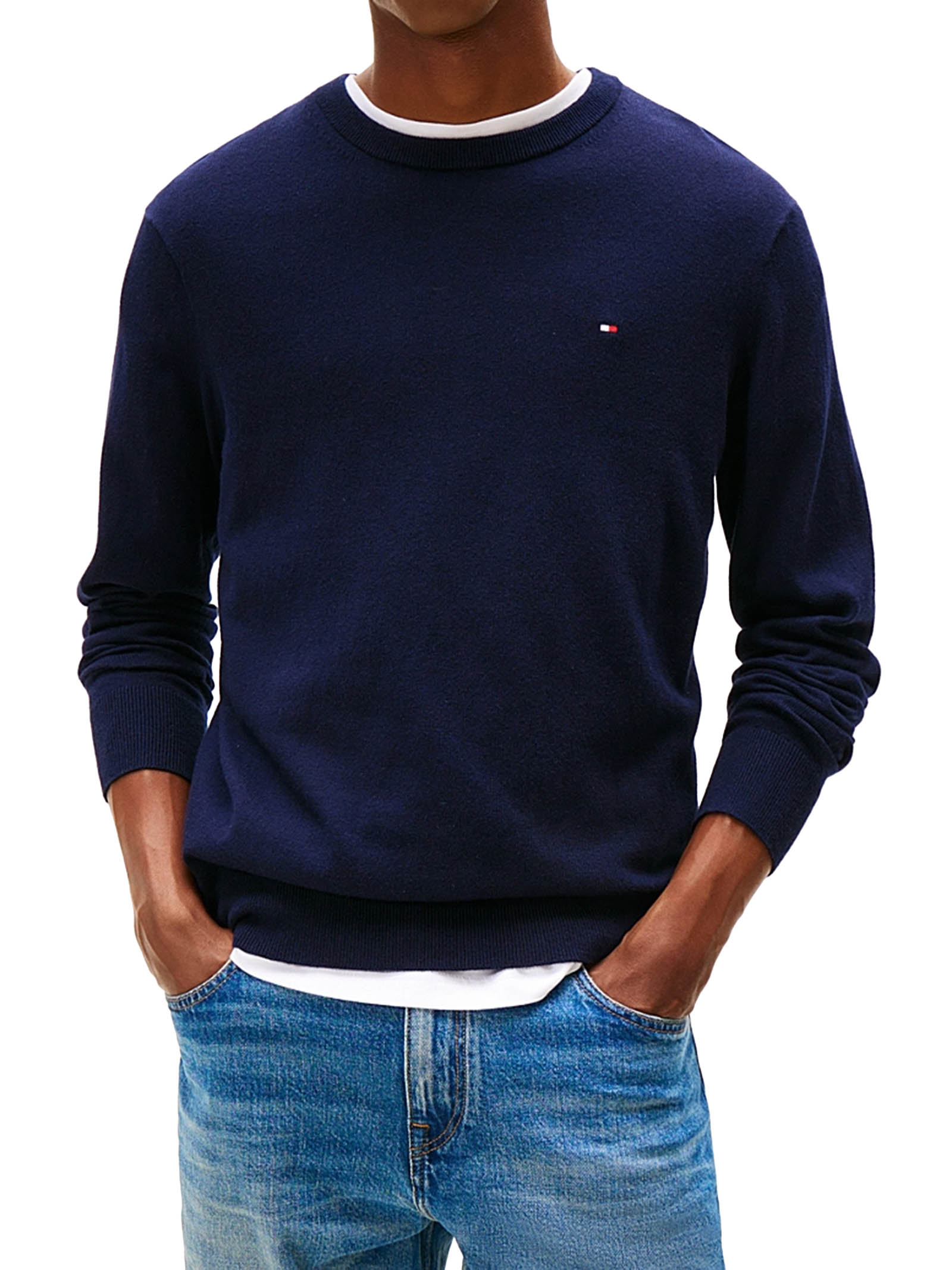 Pullover uomo Tommy HilfigerModello: girocolloMateriale: 92% cotone, 8% cashmereColore: blu
